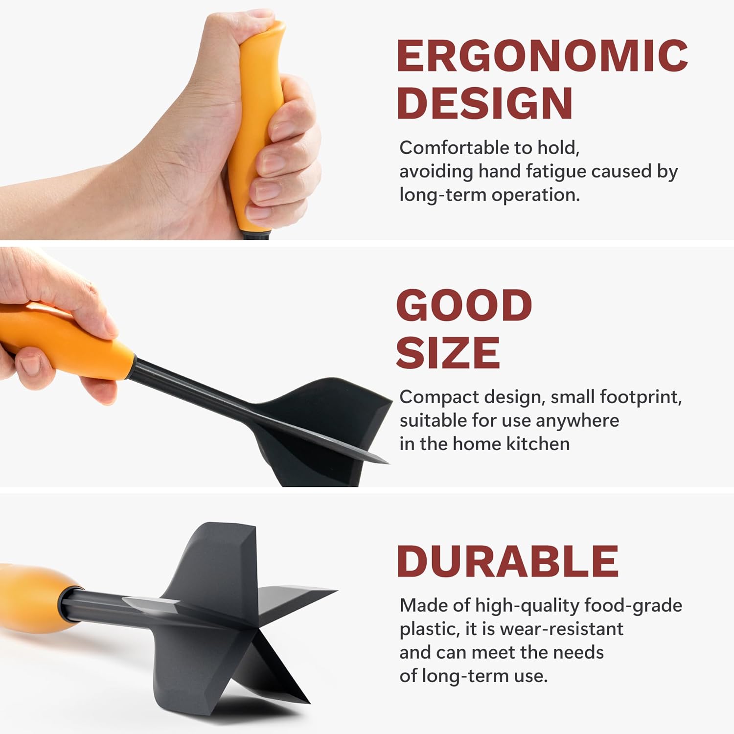 - Steady Grab: The meat smasher is made of nylon and durable, high temperature resistant up to 430β, with ergonomic design, the blade edge is neat and smooth, will not damage your pot, can easily cut food into small pieces and maintain uniform texture