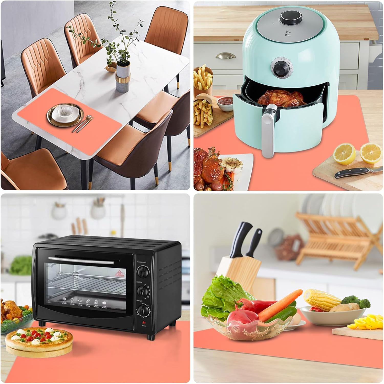 - Extra large silicone mat: Size of 36β x 24β, almost can fit most kitchen countertops, dining tables and other workbench. It can be placed under the air fryer, microwave, toaster oven, induction stove, coffee maker to protect the kitchen countertops and other surfaces against spills, scratches, grease, heat, etc. Itβs cuttable to fit different sizes and shapes.