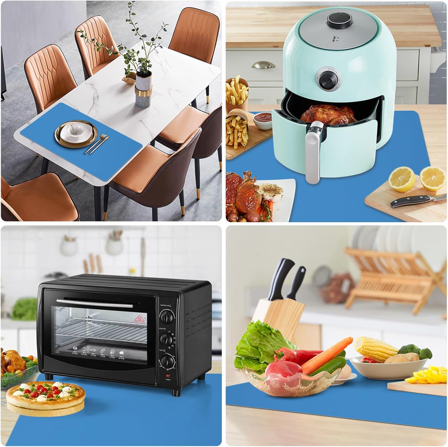 - Extra large silicone mat: Size of 48β x 24β, almost can fit most kitchen countertops, dining tables and other workbench. It can be placed under the air fryer, microwave, toaster oven, induction stove, coffee maker to protect the kitchen countertops and other surfaces against spills, scratches, grease, heat, etc. Itβs cuttable to fit different sizes and shapes.