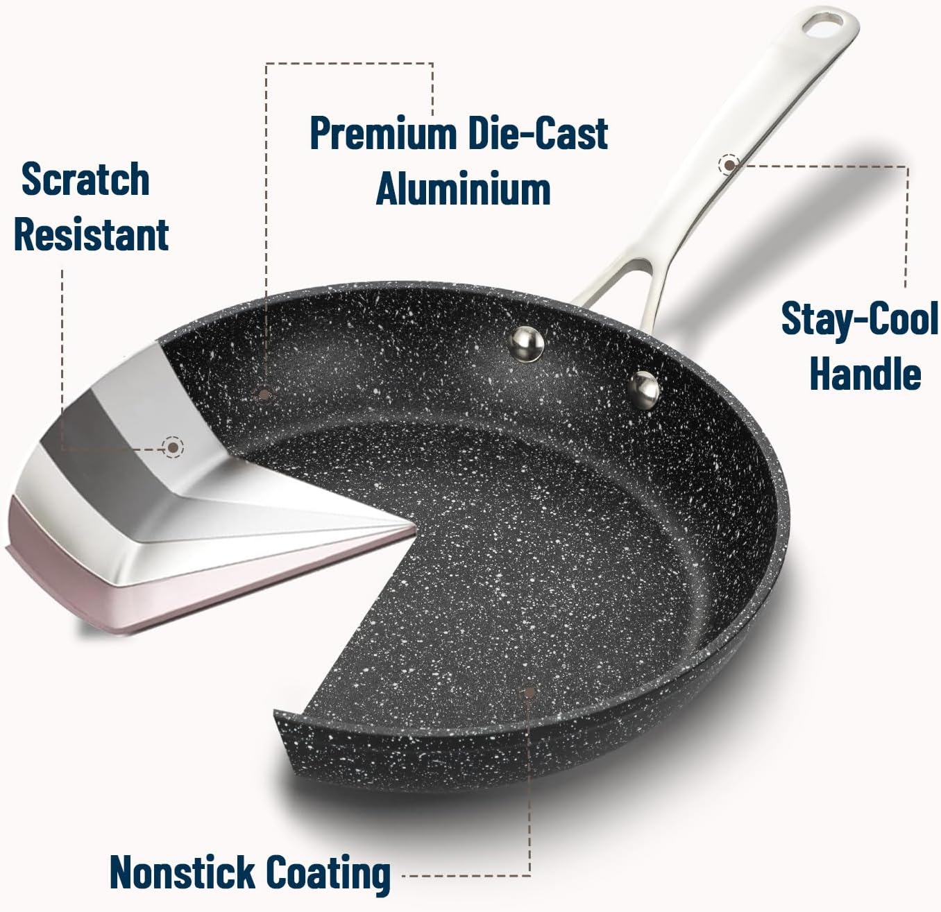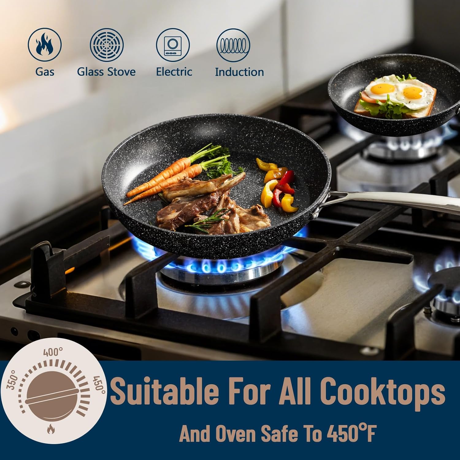 - Versatile Sizes: The 2 piece frying pan set includes an 9.5-inch and 12-inch cookware set, These sizes are perfect for cooking a variety of dishes, from individual portions to family portions