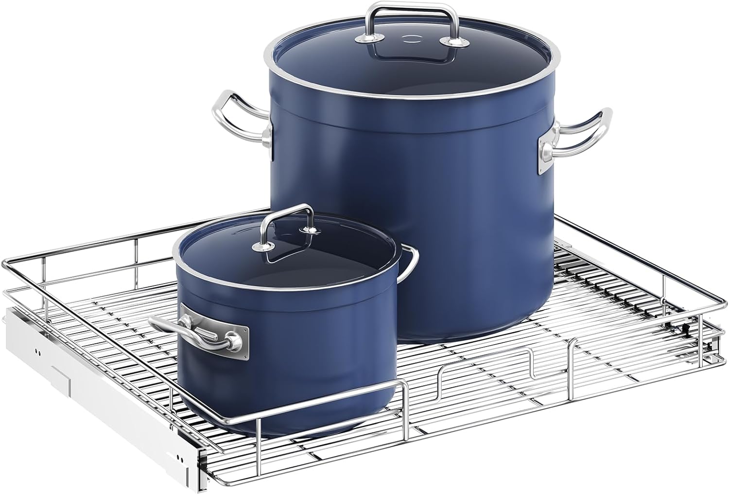 - 【Space-saving Pull Out Cabinet Organizer】This slide out cabinet organizer can maximize your cabinet space. Makes it super easy to store, organize, and access your stand mixers, pots, pans, baking sheets and other kitchen accessories, cleaning supplies, and various odds and ends. Now your cabinet is no longer just stacks of pots pans. You can contact seller via Amazon Messages to make sure if the size fit your cabinet.