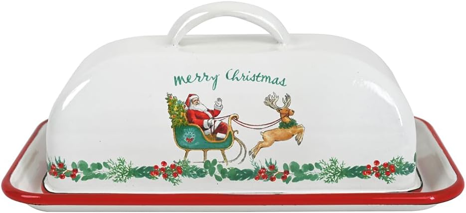 - STYLE-This vintage-style butter dish is made of steel coated with white enamel.It's designed to be sturdy, practical and very beautiful.Unlike glass or ceramic, it will never smash