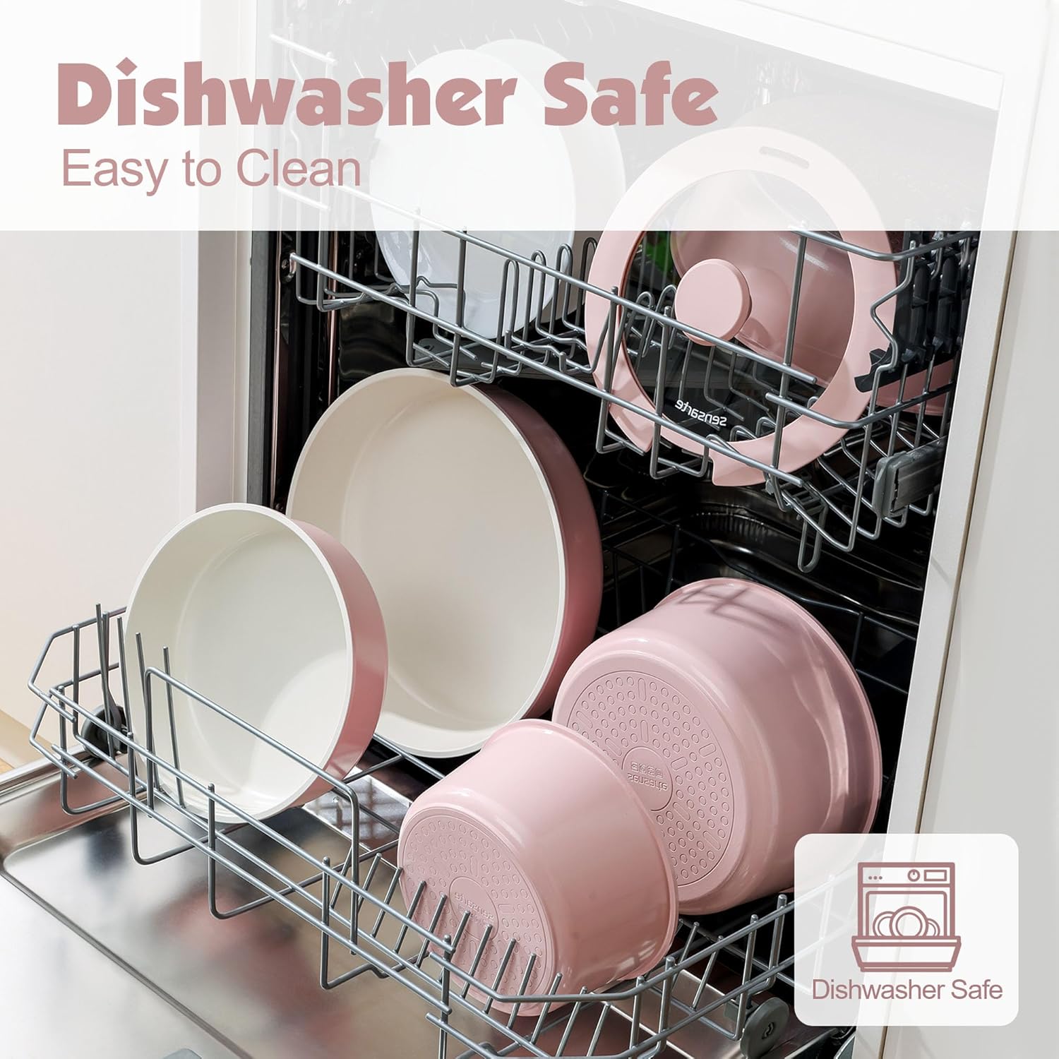 - Dishwasher Safe - Cleaning is a breeze. Professional wear-resistant design for the bottom of the pan set that prevents black residue even when used in the dishwasher.
