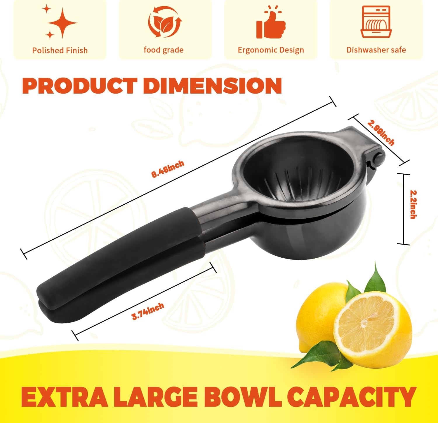 Lemon Squeezer,304 Stainless Steel Citrus Press Juicer,Non-Slip Grip Design Manual Juicer,Heavy Duty Manual Citrus Press Juicer & Lime Squeezer-Grey & BLack