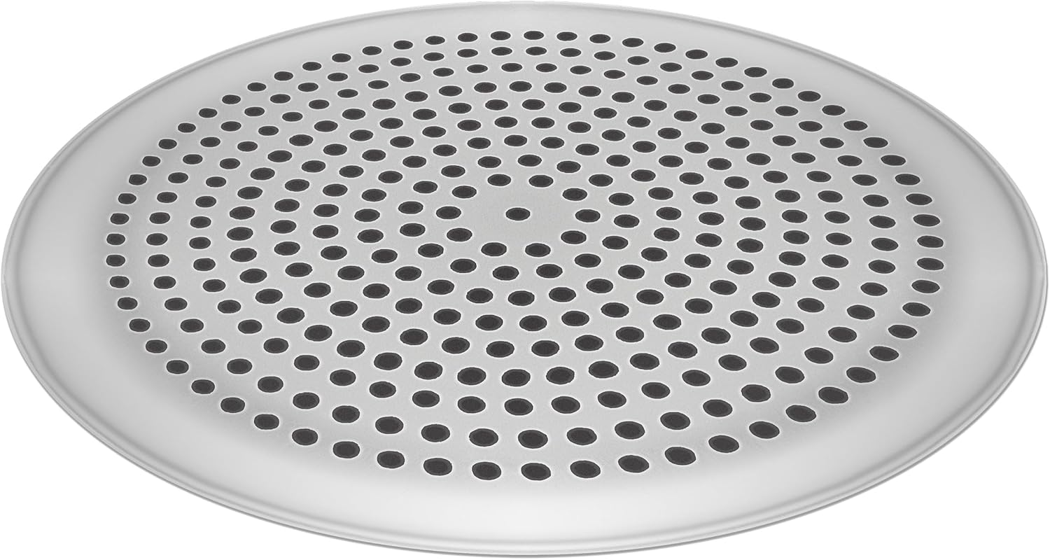 - 16-Gauge Anodized Aluminum - Perforated pan surface is great for crispy crusts. Ideal pan choice for citrus, wine, or tomato pizza sauce ingredients unlike traditional materials used for pizza pans. Easy release and clean up. Will never rust, peel or flake. No extra metals, chemical additives, dyes, PFAS, CFC’s, PTFE’s or PFOA’s. Hand wash recommended.