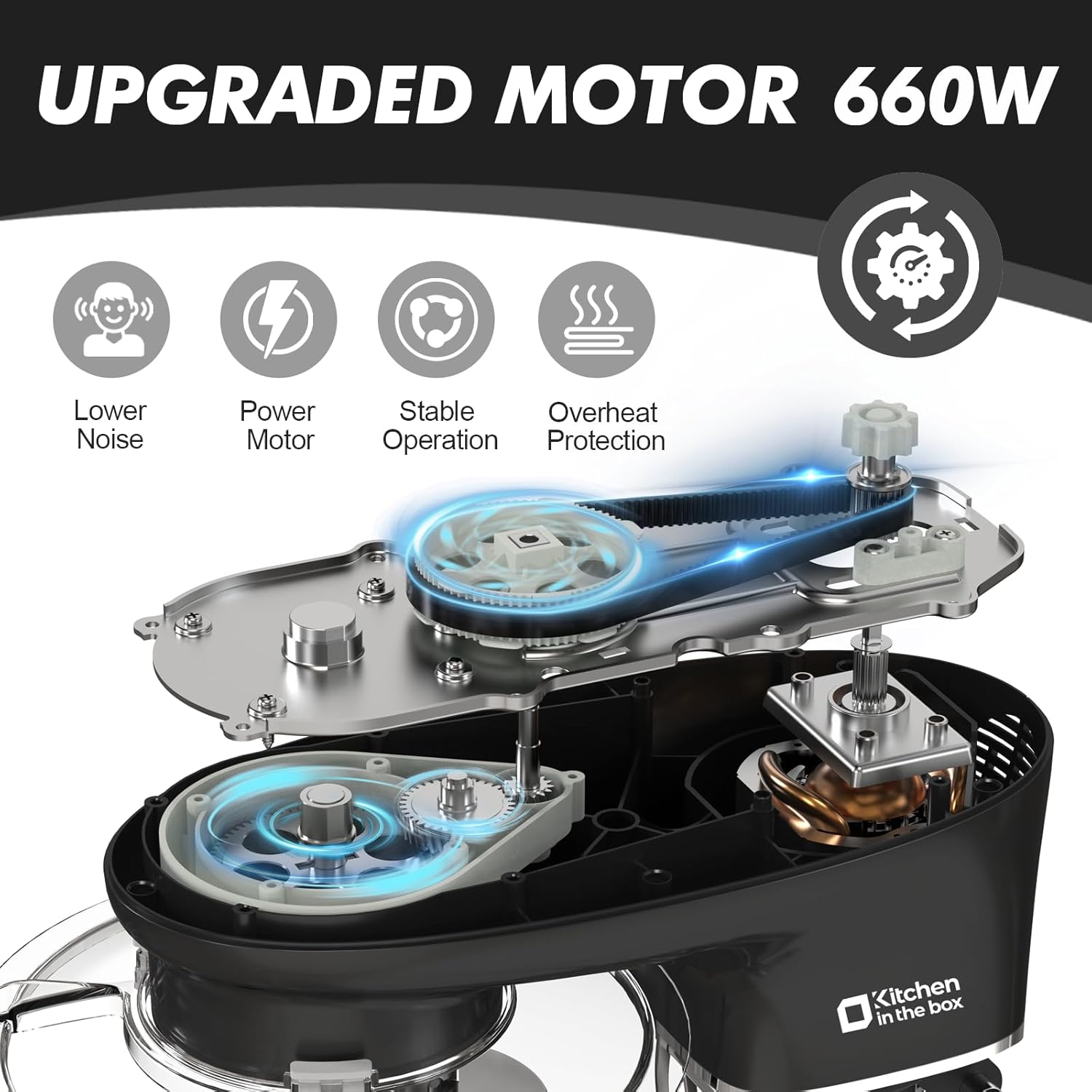 - 660W Powerful Motor: This mixer is equipped with a 660W high-performance pure copper motor, upgraded motor has higher mixing efficiency and fully knead and mix various ingredients and overheating protection device makes it safer to use