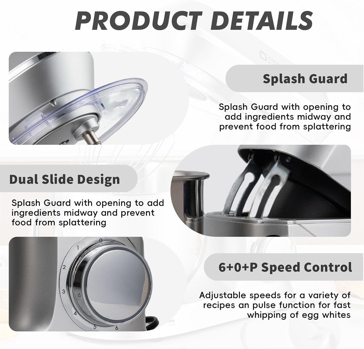 Kitchen in the box Stand Mixer, 900W 7.5QT Kitchen Electric Mixer, 6-Speed Tilt-Head Food Mixer for Baking with Dough Hook,Wire Whip,Beater (Silver)