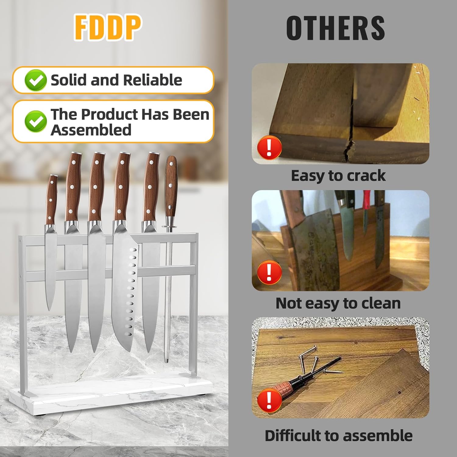 - 【Elegant and Stable Marble Base】 Crafted with a premium marble base, this knife block combines sophistication with stability. The smooth, non-porous surface resists stains and is easy to clean, maintaining a polished appearance that complements your modern kitchen. The sturdy base ensures the knife block remains steady during everyday use.