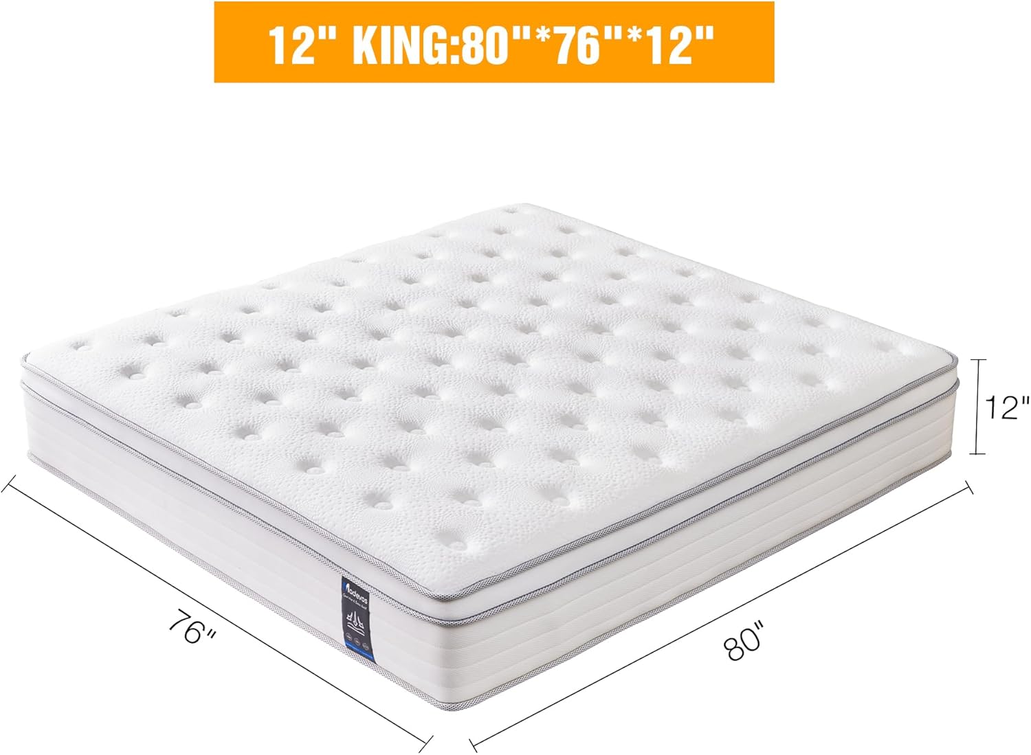 King Mattress, 12 Inch Hybrid Mattress in a Box, Memory Foam and Individual Pocket Springs, Fiberglass Free, Soft and Breathable, Medium Firm Feel