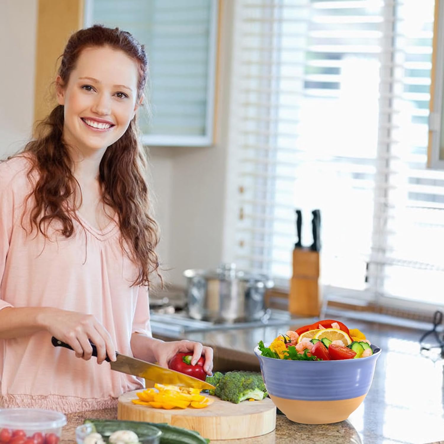 - Space-Saving: Hasense Salad Bowls are designed with stackability in mind. Their clever design allows you to stack them neatly in cabinets, helping you save space and keep your kitchen organized. Perfect for those with limited storage space
