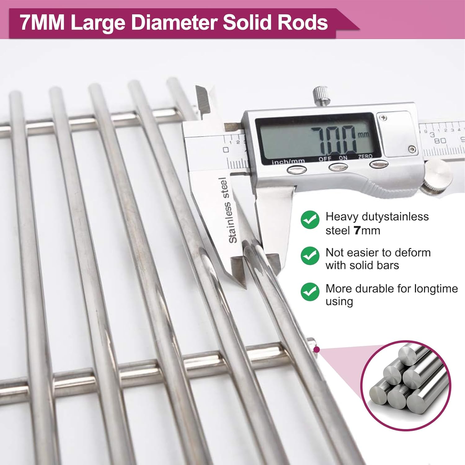 - ➤ Burner Material: Stainless Steel. Flavorizer Bars Material: Porcelain Steel;Grid Grates Material:Stainless Steel SOLID ROD DIAMETER 7MM, more thicker than other 5MM Grates