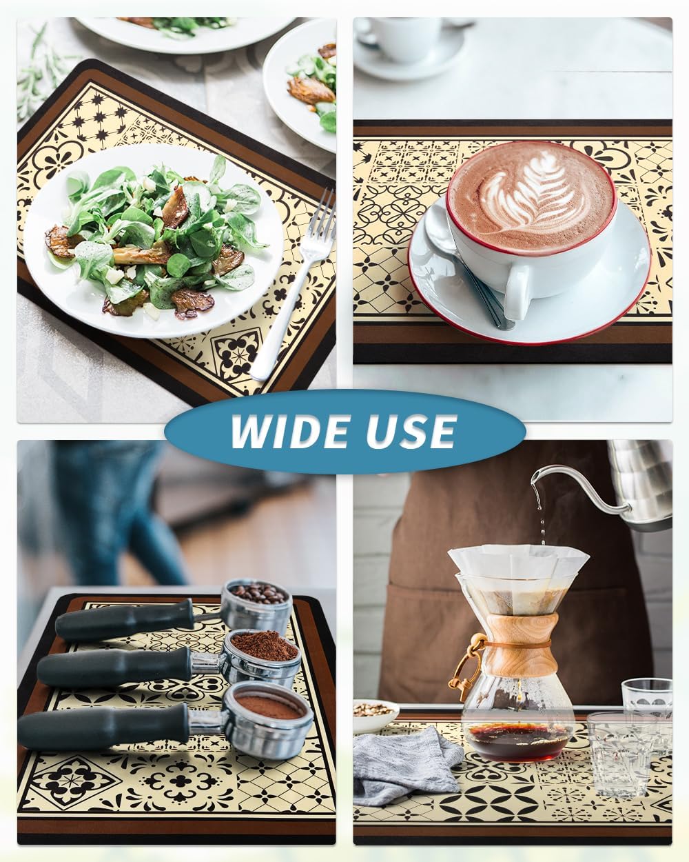 - NO WATER MARKS: special PU surface hide coffee stains, milk stains and any other dark messy stains well. Say goodbye to traditional coffee mat full of stains