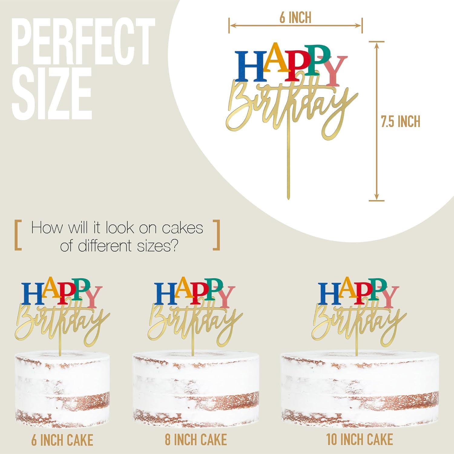 - Original Design Birthday Cake Topper: Bright colorful "HAPPY" with stylish gold hand-lettered "BIRTHDAY". A unique, eye-catching cake decoration that adds a personal touch to your bday