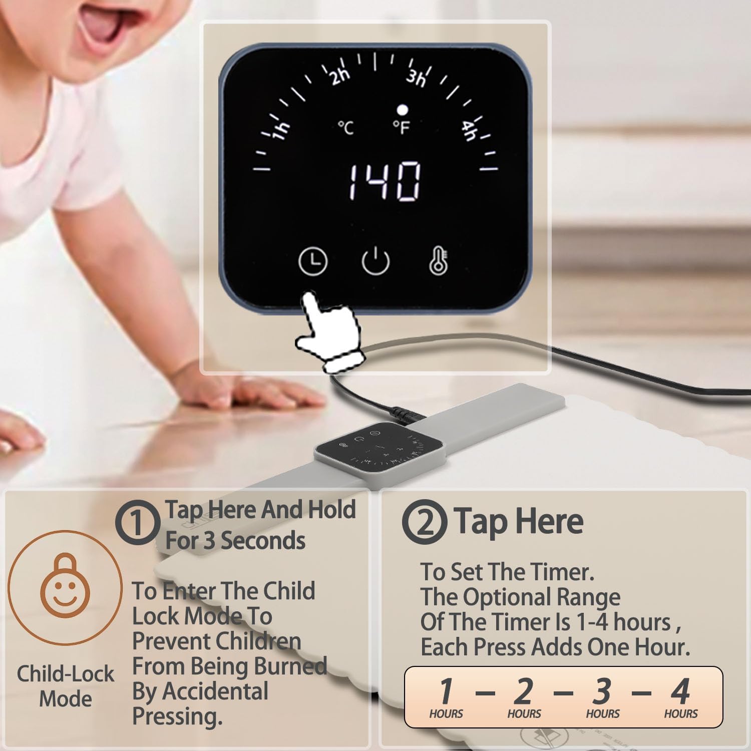 - 💗Adjustable 5-Level Temperature Control : This Silicone Electric Heating Tray Providing 5 Temperature Levels From 140℉ to 212 ℉ (140℉-158℉,-176℉-194℉-212℉), Meeting Various Needs Such as Keeping food warm, defrost, warm milk ,Fermenting Dough etc., Making It Convenient For You To Efficiently Prepare Meals and Enjoy Precise Temperature Adjustment For Heating and Keeping Food Warm , Perfect For Buffets, Parties, and Gatherings.