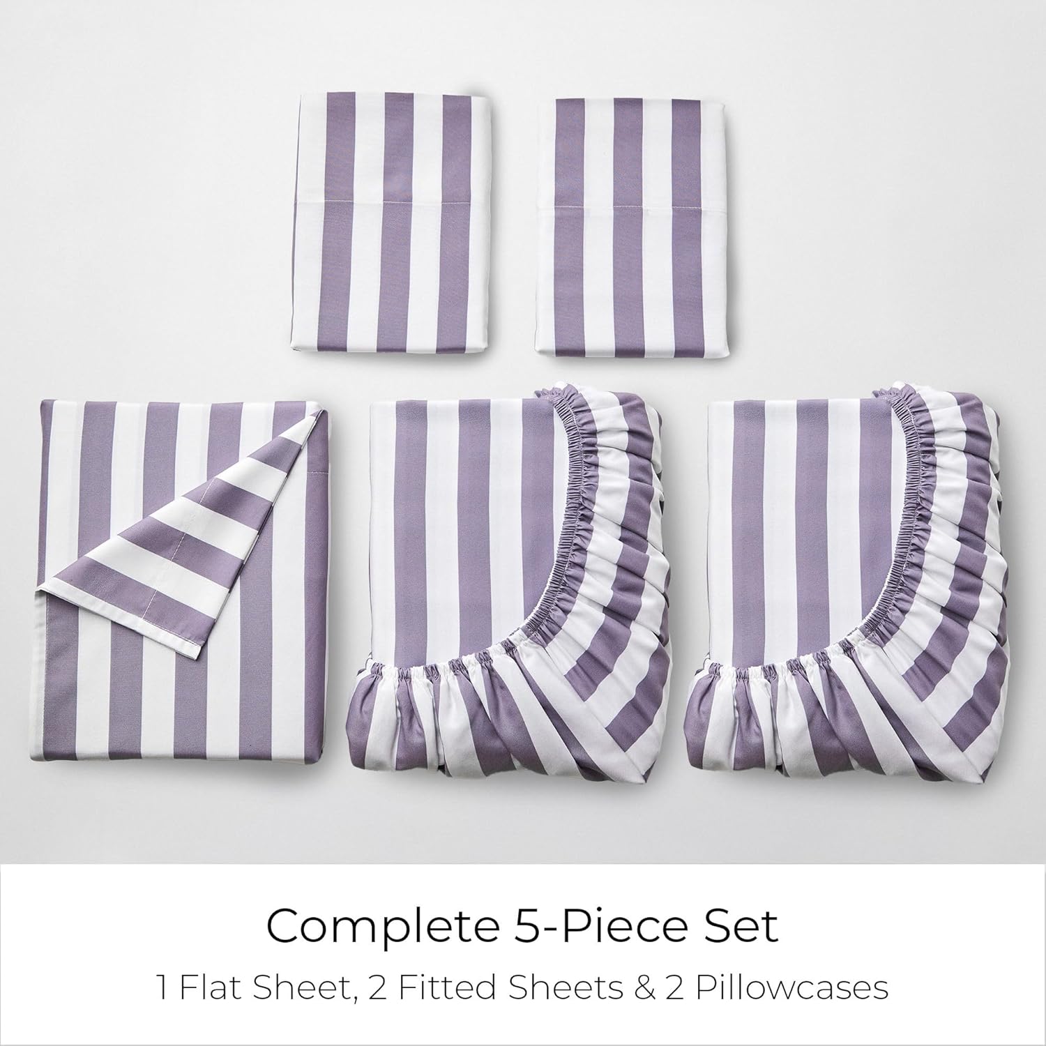 Mellanni Split King Sheets Set - 5 PC Iconic Collection Bedding - Hotel Luxury, Soft, Cooling Bed Sheets - Wrinkle, Fade, Stain Resistant (Split King, Oxford Stripe Hazy Lilac)