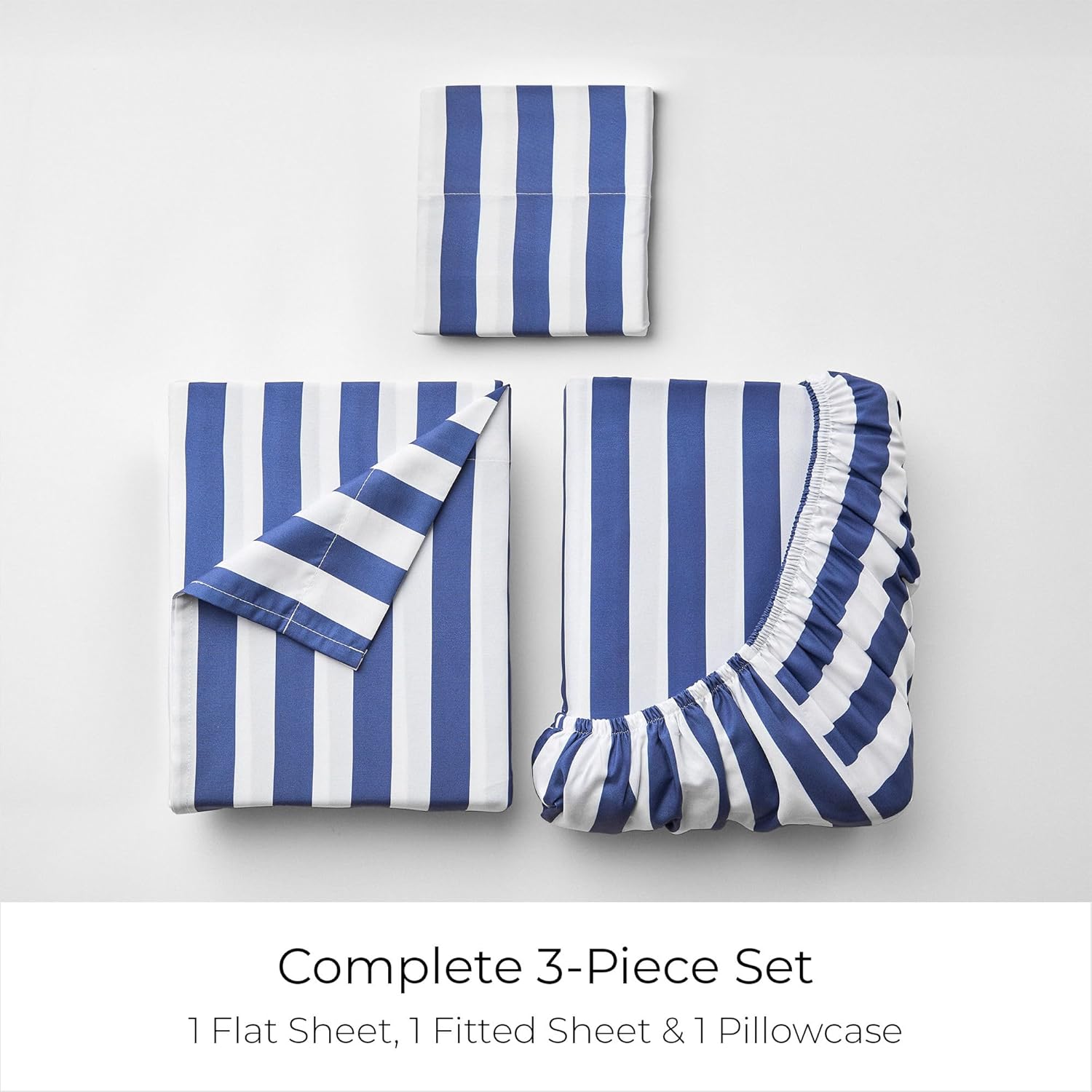 Mellanni Twin XL Sheets Set - 3 PC Iconic Collection Bedding - Hotel Luxury, Soft, Cooling Bed Sheets - Wrinkle, Fade, Stain Resistant (Twin Extra Long, Oxford Stripe Blue Nova)