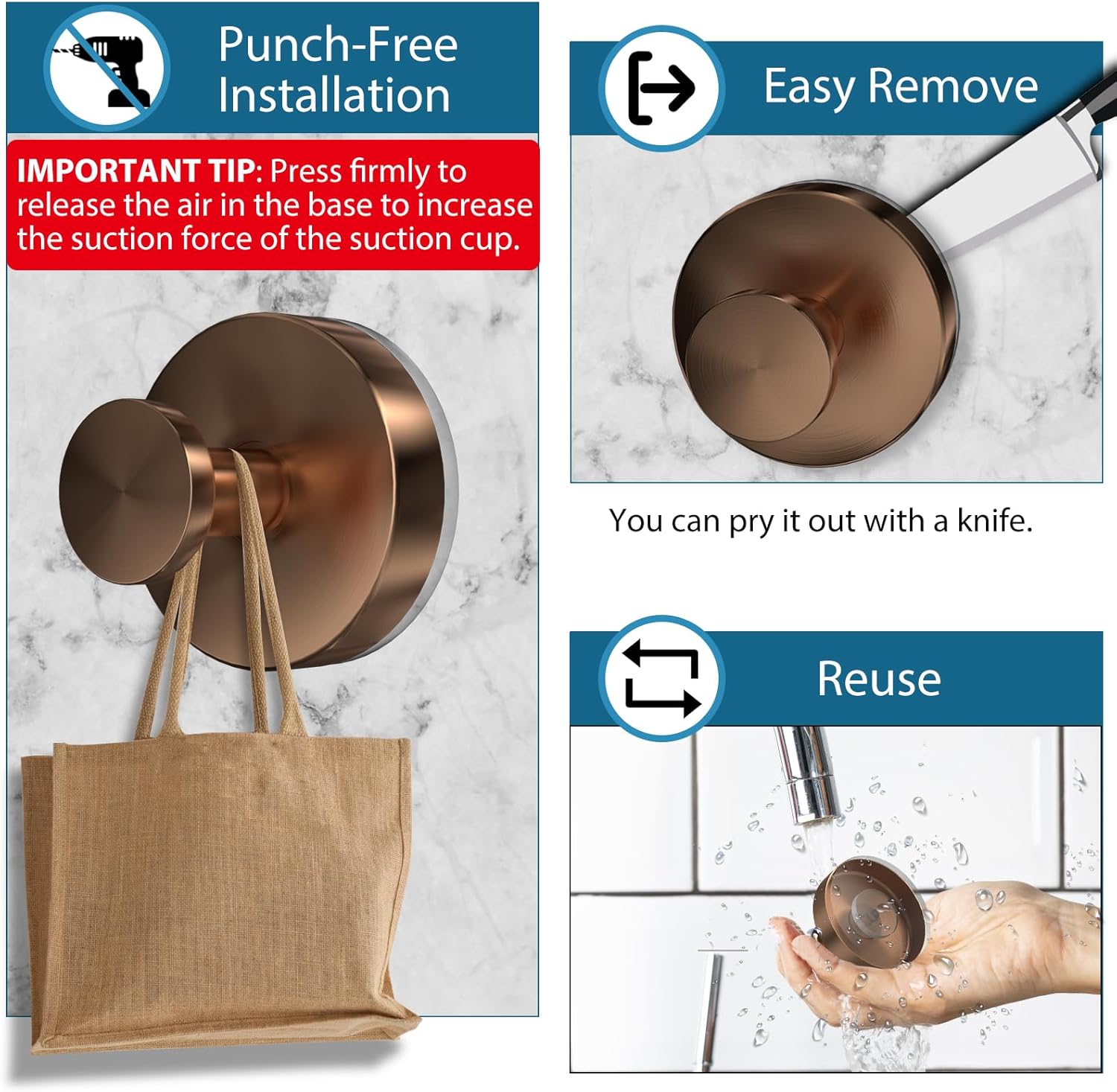 - 【No Screws Required & Reusable】 The stylish shower suction cup hook is made of waterproof and rust-proof 304 stainless steel material, and the excellent vacuum suction technology allows you to easily install and remove without tools or screws. Pry it out with a knife, clean the bottom of the command hooks and dry it for reuse.