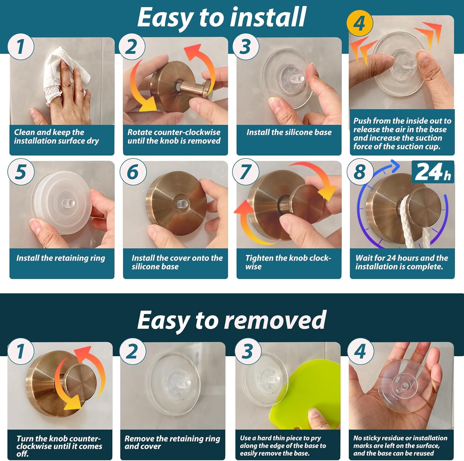- 【Easy to Install and Use】 AbluFirst shower hooks do not damage walls during use. Just choose a smooth surface, twist and lock, and it’s done quickly. (Please refer to the instructions for detailed steps) The high-quality suction cup adhesive can be easily removed or repositioned without leaving sticky residue or installation marks.
