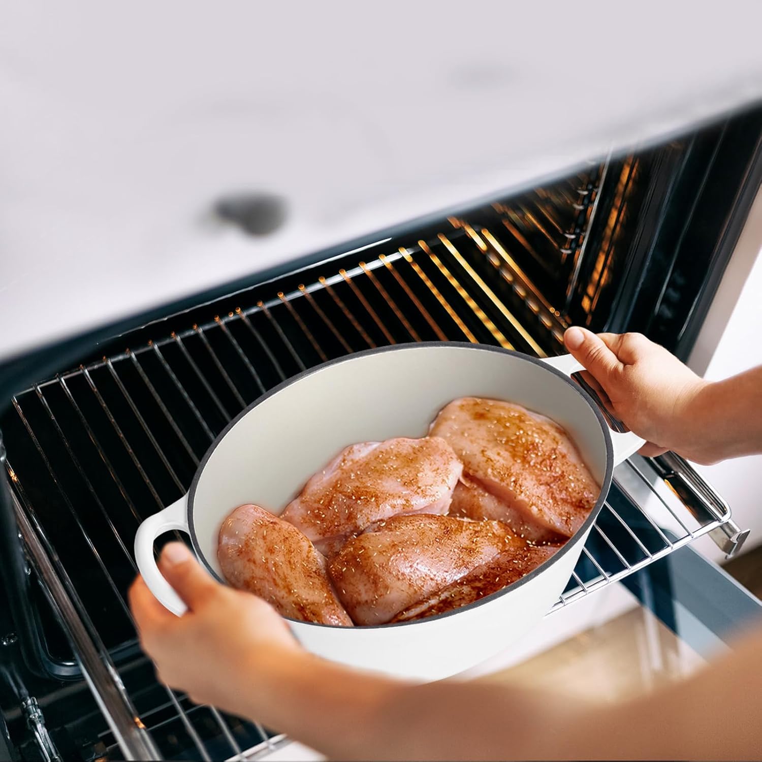 - Superior Heat Retention, our Dutch oven for bread baking ensure even heat distribution and retention, evenly heating throughout both the bottom and sidewalls, oval Dutch oven also reduces the amount of energy needed for cooking, ensuring perfect roasts, stews and baked bread every time. Oven Safe up to 500β