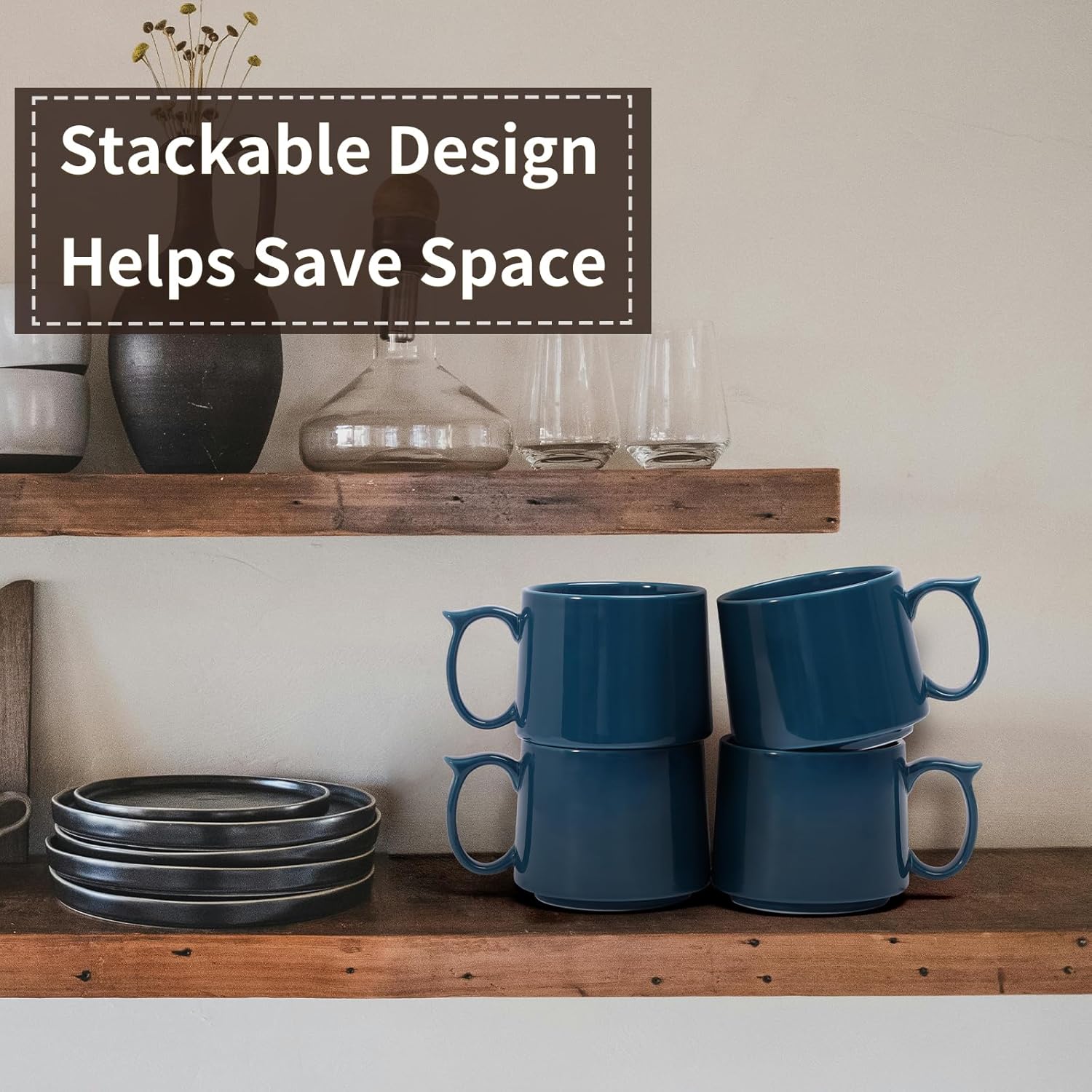 19 oz Large Coffee Mugs Set of 4, Stackable Ceramic Coffee Mugs with Large Handles for Coffee, Latte, Cappuccino, Milk, Dishwasher & Microwave Safe, Ideal for Men, Women, Dads and Moms (Blue)