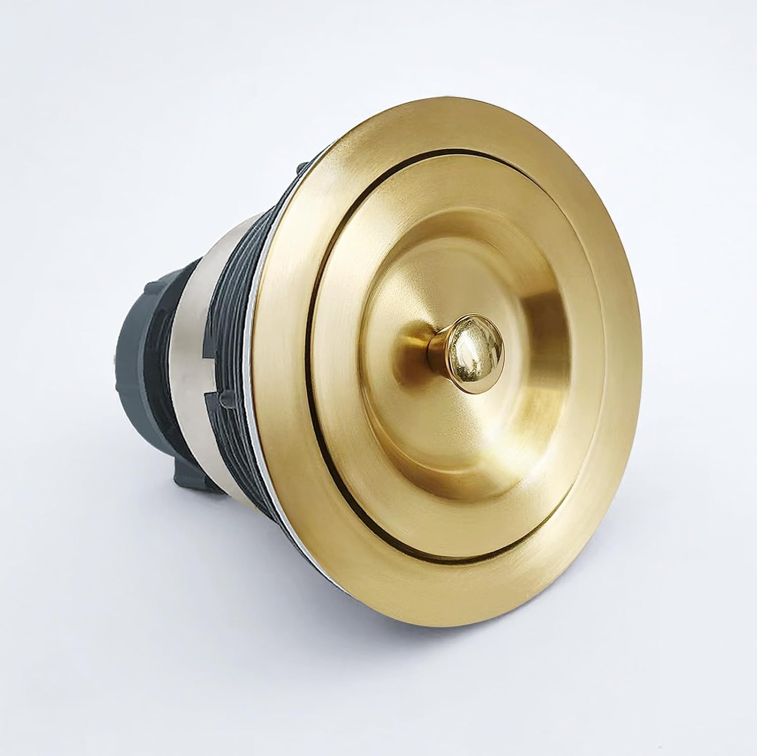 3-1/2-Inch Kitchen Sink Drain Strainer Assembly Kit, GZILA Deep Waste Basket Strainer with Sealing Lid Sink Stopper, 304 Stainless Steel Brushed Gold