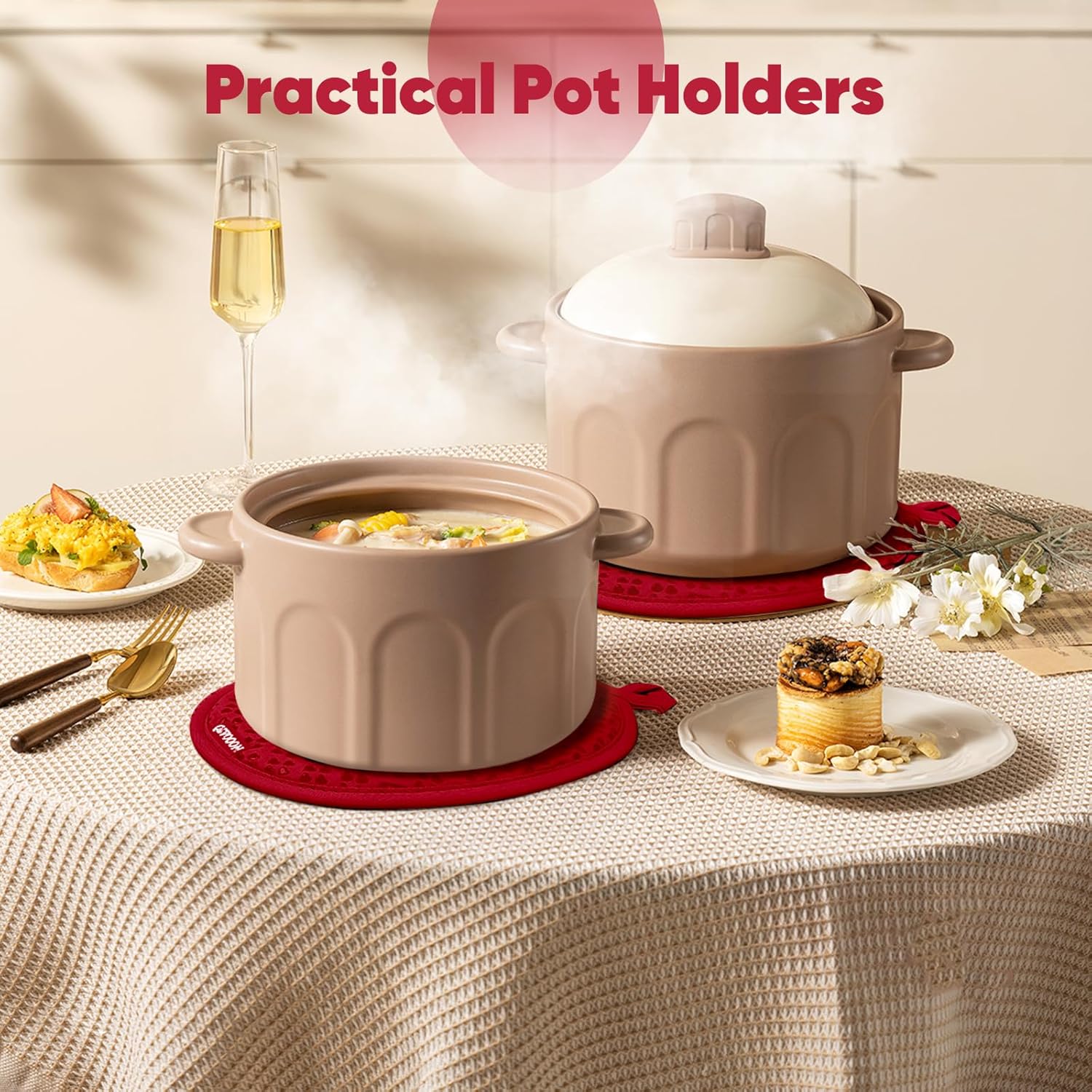 - Kitchen Essentials: These sets of oven mitts and pot holders feature heart-shaped silicone prints that provide a strong grip and effectively prevent slippage. Bid farewell to awkward accidents and welcome effortless maneuvering in the kitchen. Whether you need to remove a hot casserole dish or adjust a sizzling pan,these silicone oven mitts pair will certainly come in handy