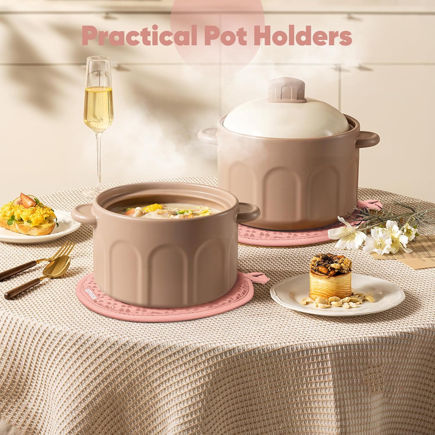 - Kitchen Essentials: These sets of oven mitts and pot holders feature heart-shaped silicone prints that provide a strong grip and effectively prevent slippage. Bid farewell to awkward accidents and welcome effortless maneuvering in the kitchen. Whether you need to remove a hot casserole dish or adjust a sizzling pan,these silicone oven mitts pair will certainly come in handy