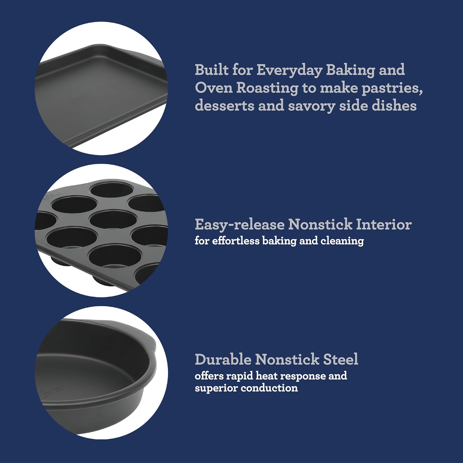 - EASY-RELEASE NONSTICK PERFORMANCE: Perfect for making pastries, desserts and side dishes, this bakeware set is easy to clean and is designed for everyday use