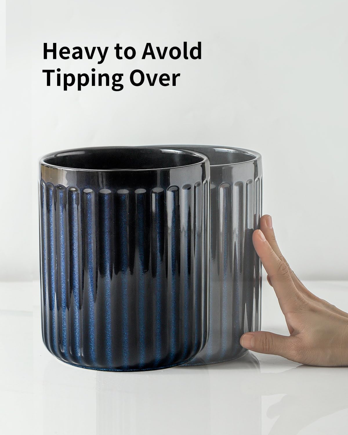 - Textured Elegance: This ceramic navy blue utensil holder features a ribbed texture with lighter flecks, enhancing your kitchen decor and adding a tactile touch that enriches your countertop’s charm
