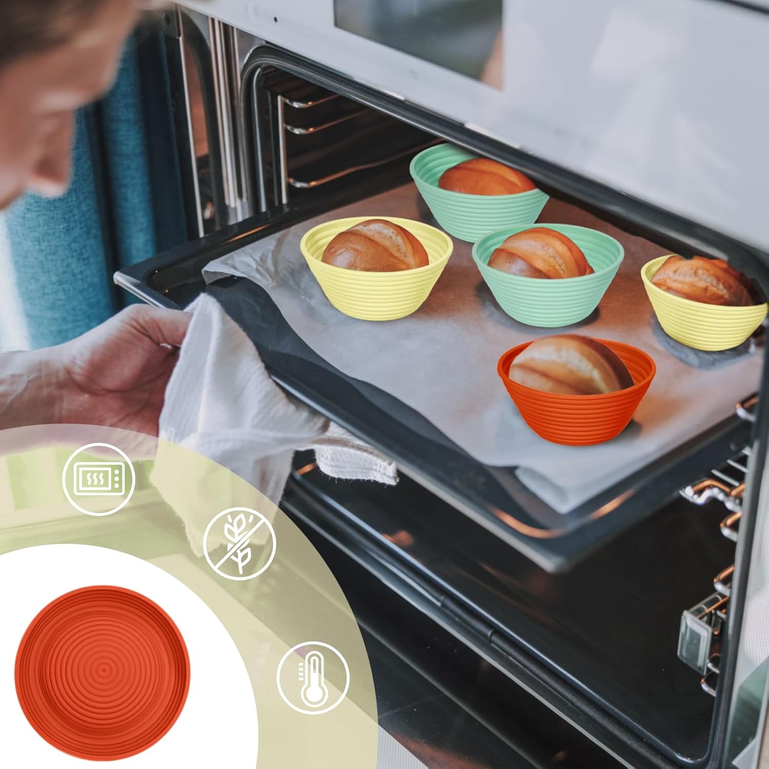 Silicone Banneton, Sourdough Bread Baskets (Set of 6, 5 Inch), Round Proofing Bread Bowls with Starter Kit, Bread Making Baking Supplies