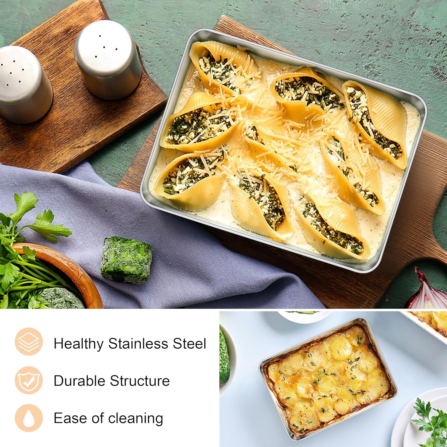 - 【BAKING EVENLY】 Pure stainless steel provides excellent heat conductivity for perfectly browned food, With flat bottom ensures even and uniform baking for good baking performance, Make it ideal for baking/cooking/roasting veggies, bacon or chicken breast