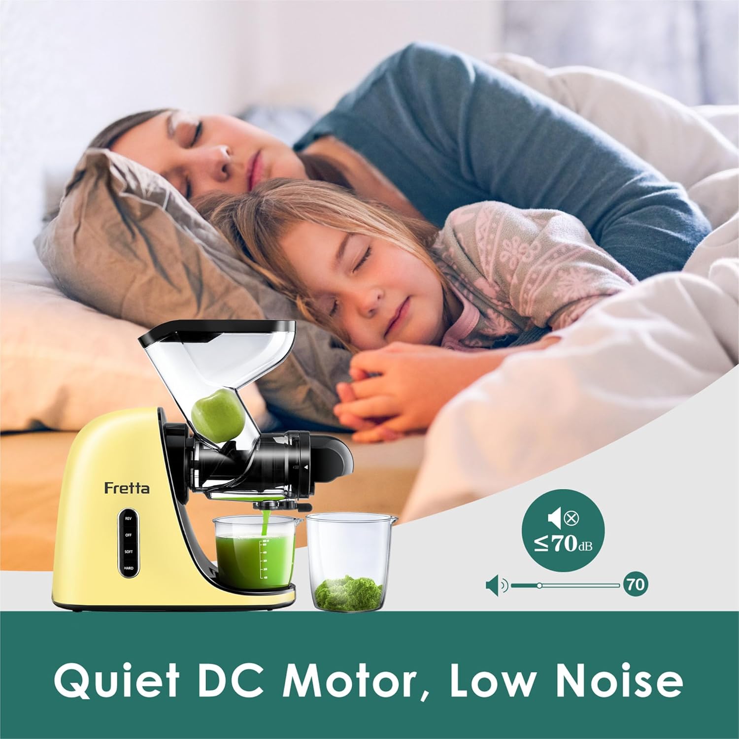 - 【Efficient and Quiet 200W Motor】The Fretta juicer is equipped with a powerful 200-watt DC noise-reduced motor, providing strong and efficient performance for faster juicing while keeping noise levels to a minimum.