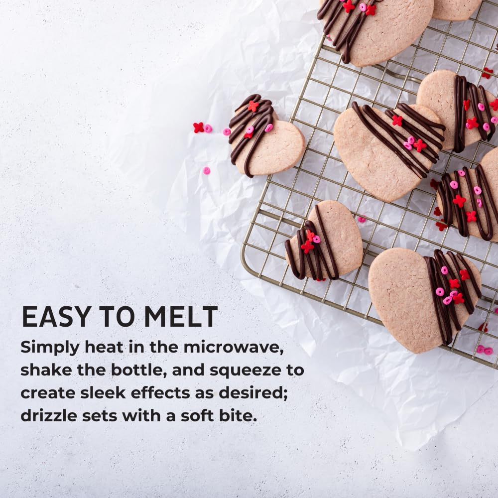 - EASY TO MELT: Simply heat in the microwave, cool slightly, shake bottle and squeeze to create sleek effects as desired; drizzle sets with a soft bite; this 5 oz bottle will coat the top or drip the sides of one 8β cake
