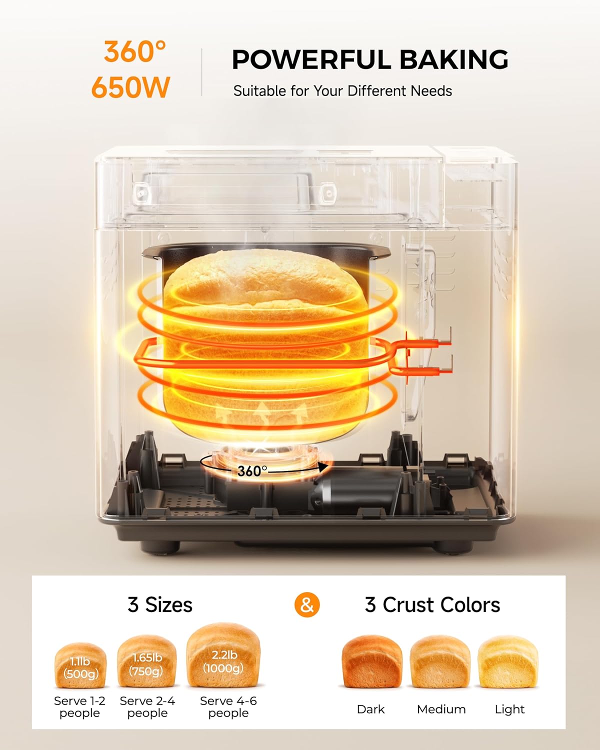 - ๐๐๐ซ๐ ๐ ๐ ๐๐ ๐๐๐ฉ๐๐๐ข๐ญ๐ฒ: With our 2 LB capacity, this bread maker machine allows you to bake and enjoy larger bread, making it very suitable for family sharing. It also offers 3 crust shades (light, medium, dark) and 3 loaf sizes (2lb, 1.5lb, 1lb), enhancing your bread-making experience. Our viewing window allows you to enjoy the show of making bread. And the thoughtful design of insulated handle makes it safe for you to open the lid, and ๐ฒ๐จ๐ฎ ๐ฃ๐ฎ๐ฌ๐ญ ๐ง๐๐๐ ๐ญ๐จ ๐ญ๐ฎ๐ซ๐ง ๐๐ง๐ ๐ฅ๐ข๐๐ญ ๐ญ๐ก๐ ๐ฉ๐๐ง ๐ญ๐จ ๐ซ๐๐ฆ๐จ๐ฏ๐ ๐ข๐ญ