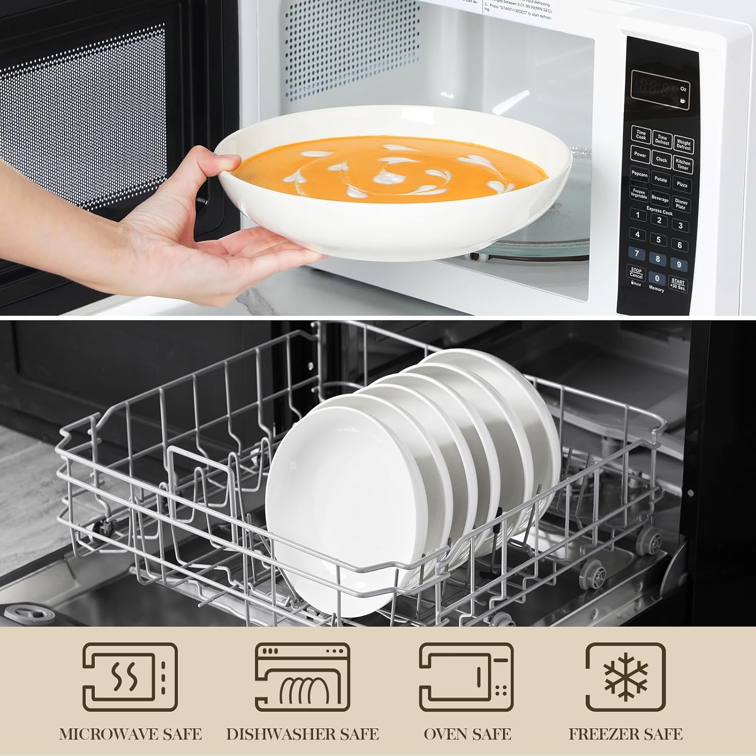 - 【WIDE & SHALLOW DESIGN】White Pasta Bowls featuring a wide and shallow design prevents spills and messes. Featuring a modern and minimalist design with a classic white finish and smooth glaze, these bowls complement any table setting and enhance dining experience.