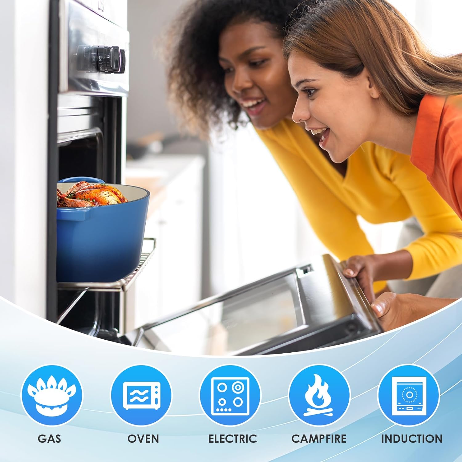 LIFERUN 6 Qt Enameled Cast Iron Dutch Oven Pot with Lid,Oven Safe up to 500° F, Non-Stick Dutch Oven with Dual Handles for Bread Baking, Fry Foods, Braising, Stews, Roasting (Blue)