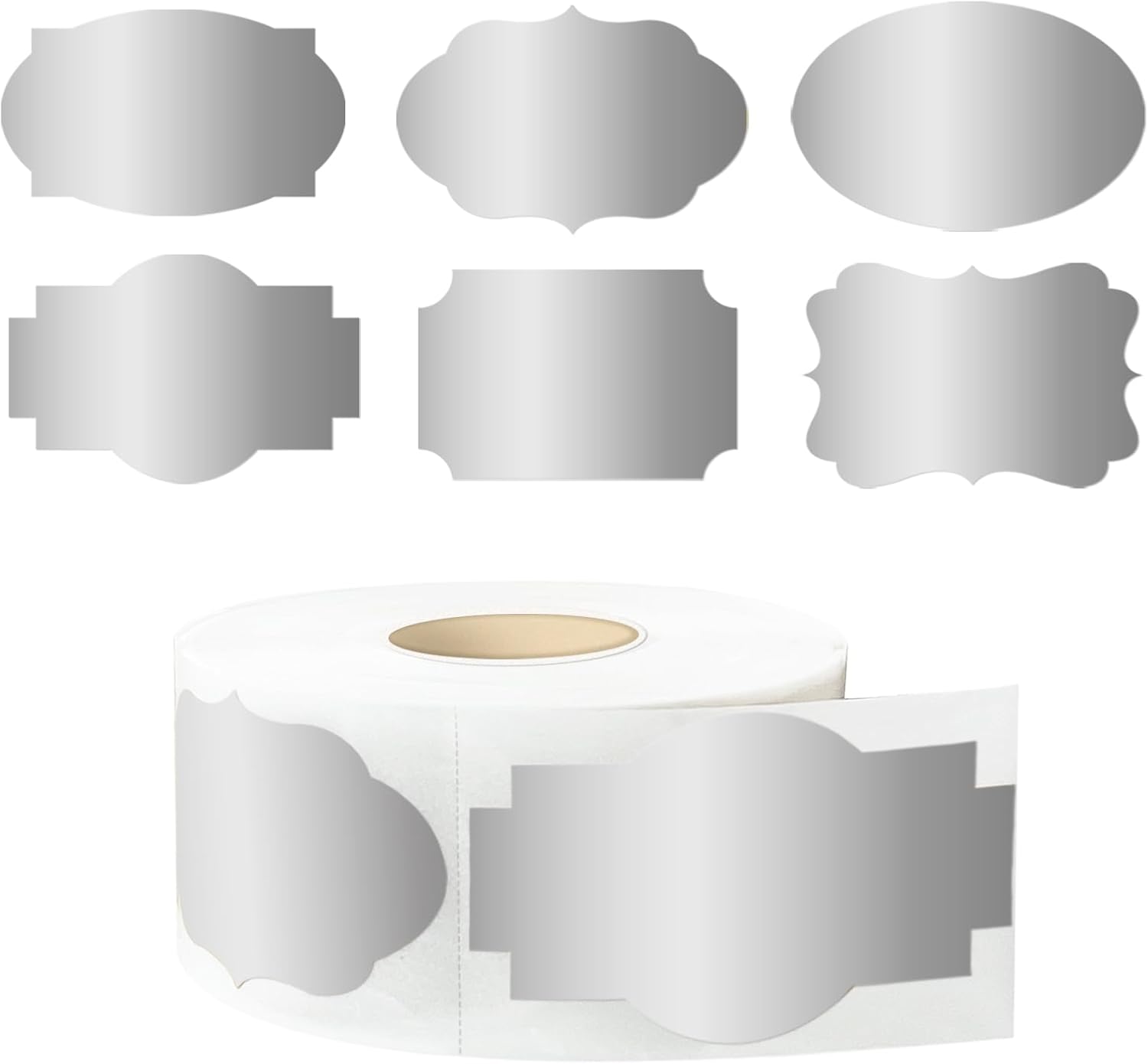 350 PCS Gift Tags Stickers, 2" x 1.2" Fancy Shape Stickers, Self-Adhesive, Handmade Bottle All-Purpose Jar Labels for Presents, Cosmetic Decoration Jars, Food Craft (Silver)