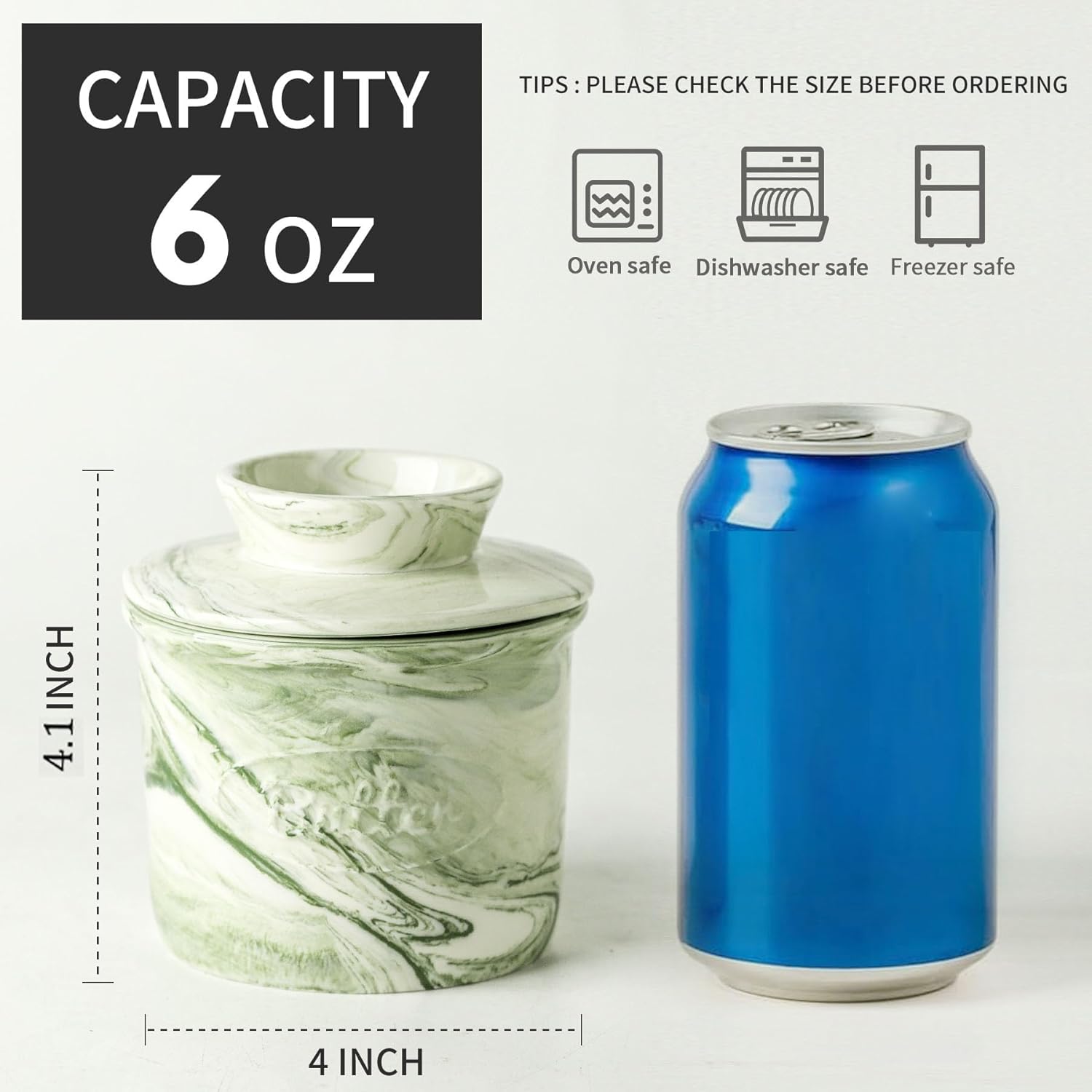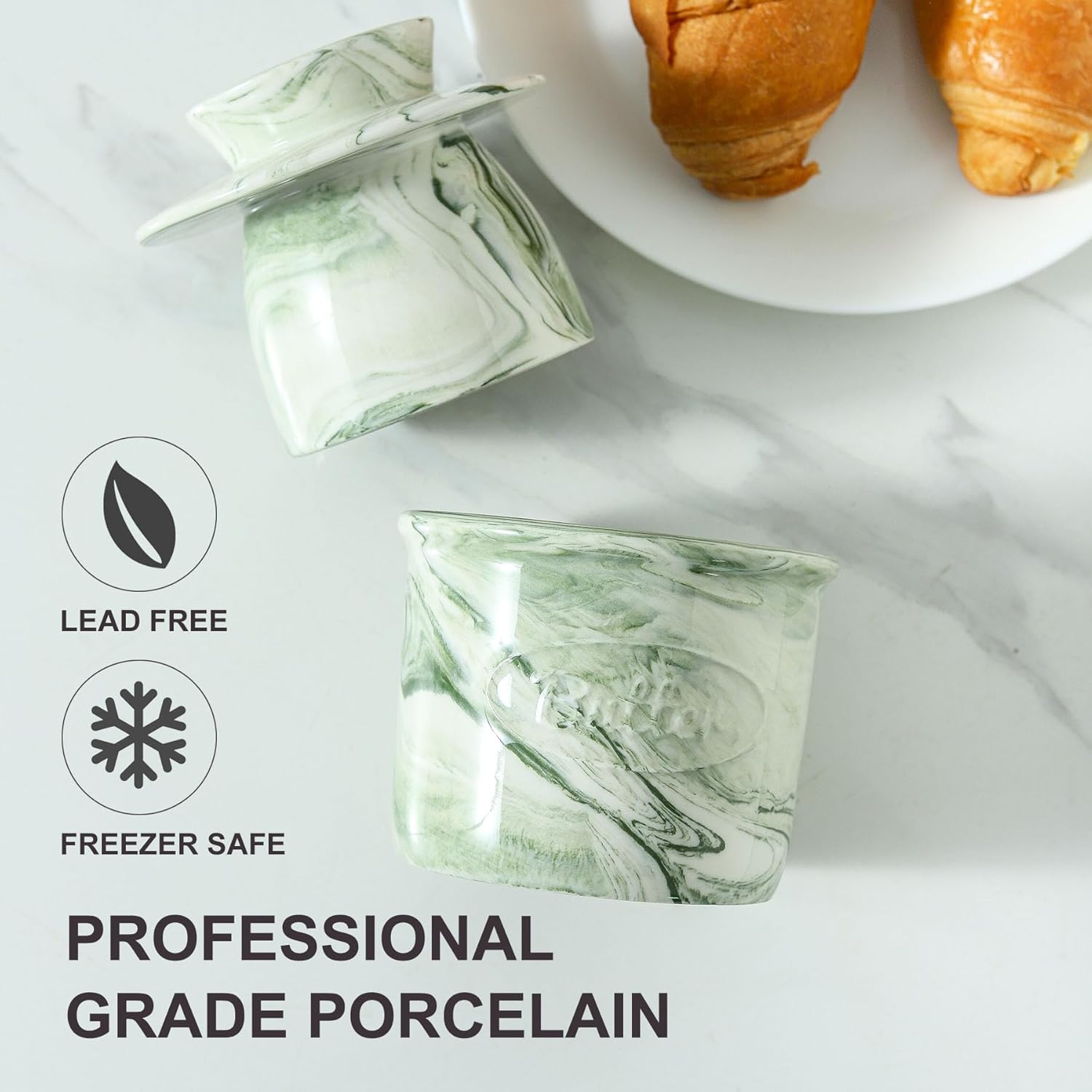 - HOWISE butter dish with lid is made from durable porcelain, premium lead-free, chip-resistant. Never worry about harmful substance leaching into your food. Butter jar strong and safe to put in the freezer and dishwasher.