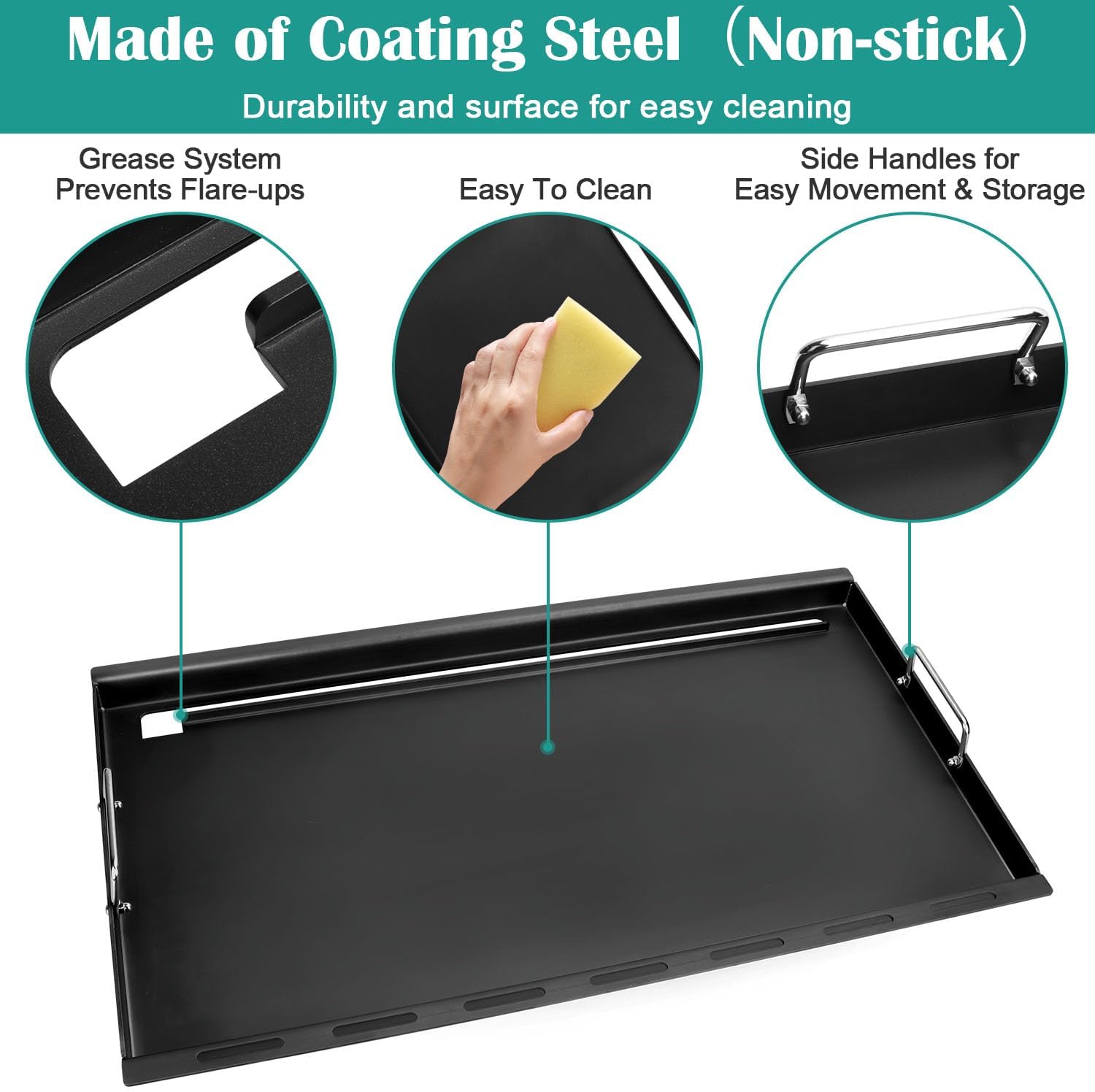 - 【Features】The inserts griddle is closer to the fire source and heats up more easily than other griddles placed on the grates to achieve the temperature needed to cook delicious food. Before use, please remove the grate & emitter plates to achieve closer to the heat source. The surface of the baking pan is made of coating, durable and easy to clean, need to be heated and oiled 1-2 times before use for better results.