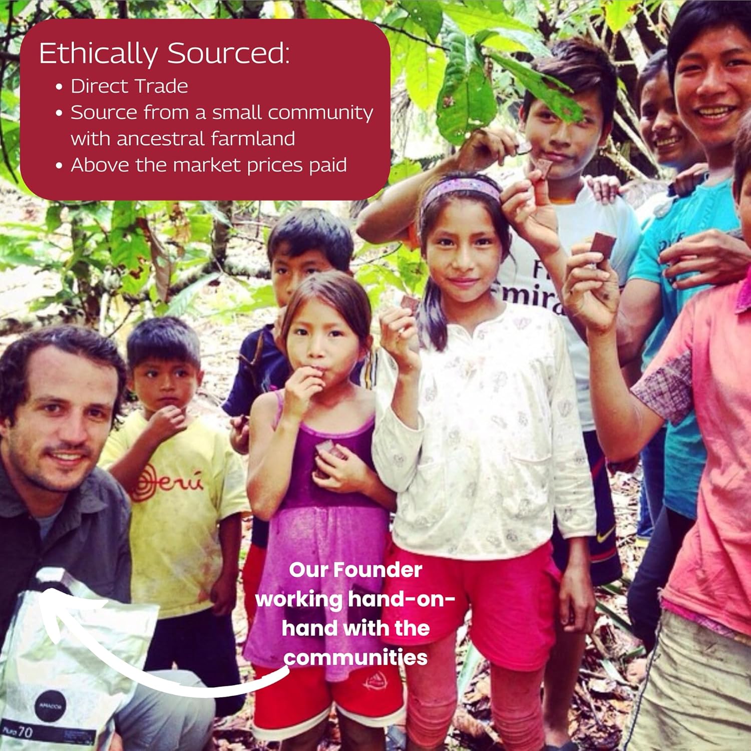 - How do we source our cacao? We have been doing research and working with farmers directly for the past 10 years. We train them in GAP and harvest and post harvest. We make sure the beans we use are sustainably grown. Therefore our supply chain is really short and we work directly with farmers in Peru. This is how we ensure quality and possitive impact from the farm to your table.