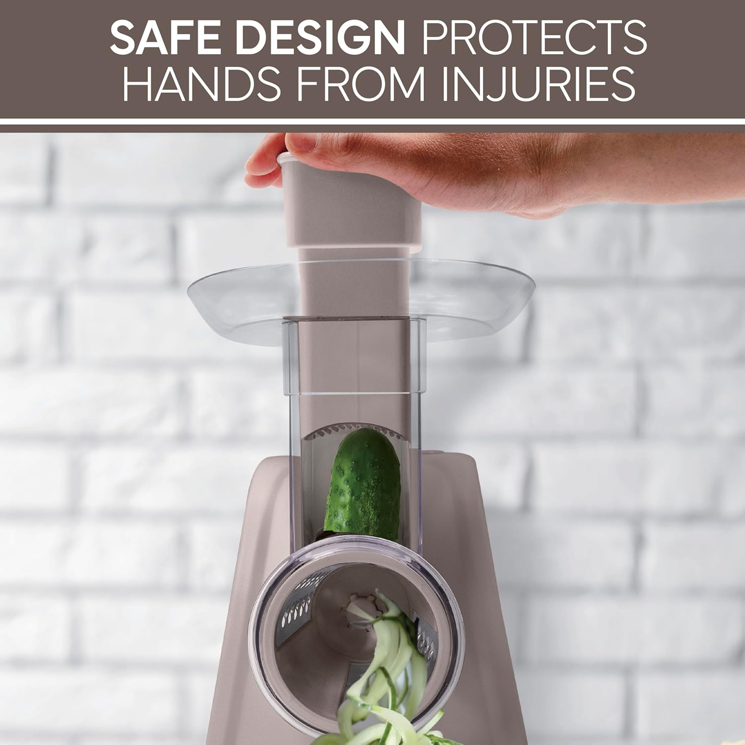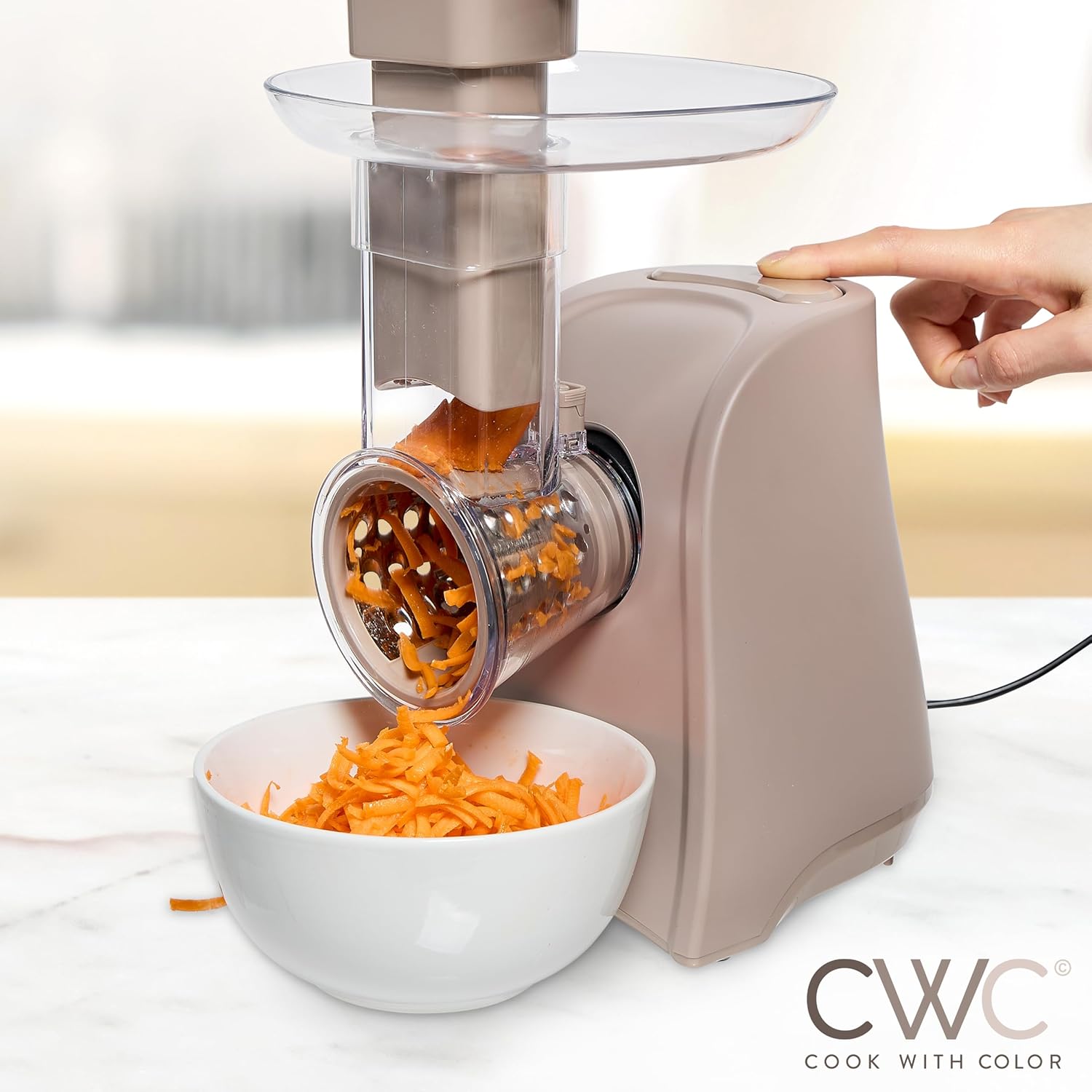 COOK WITH COLOR 5-in-1 Electric Slicer, 150W Food Prep Machine – Parmesan Shredder, Fine & Coarse Graters, Potato Grater, Vegetable Slicer, Compact Design for Bowl Prep, Warm Grey