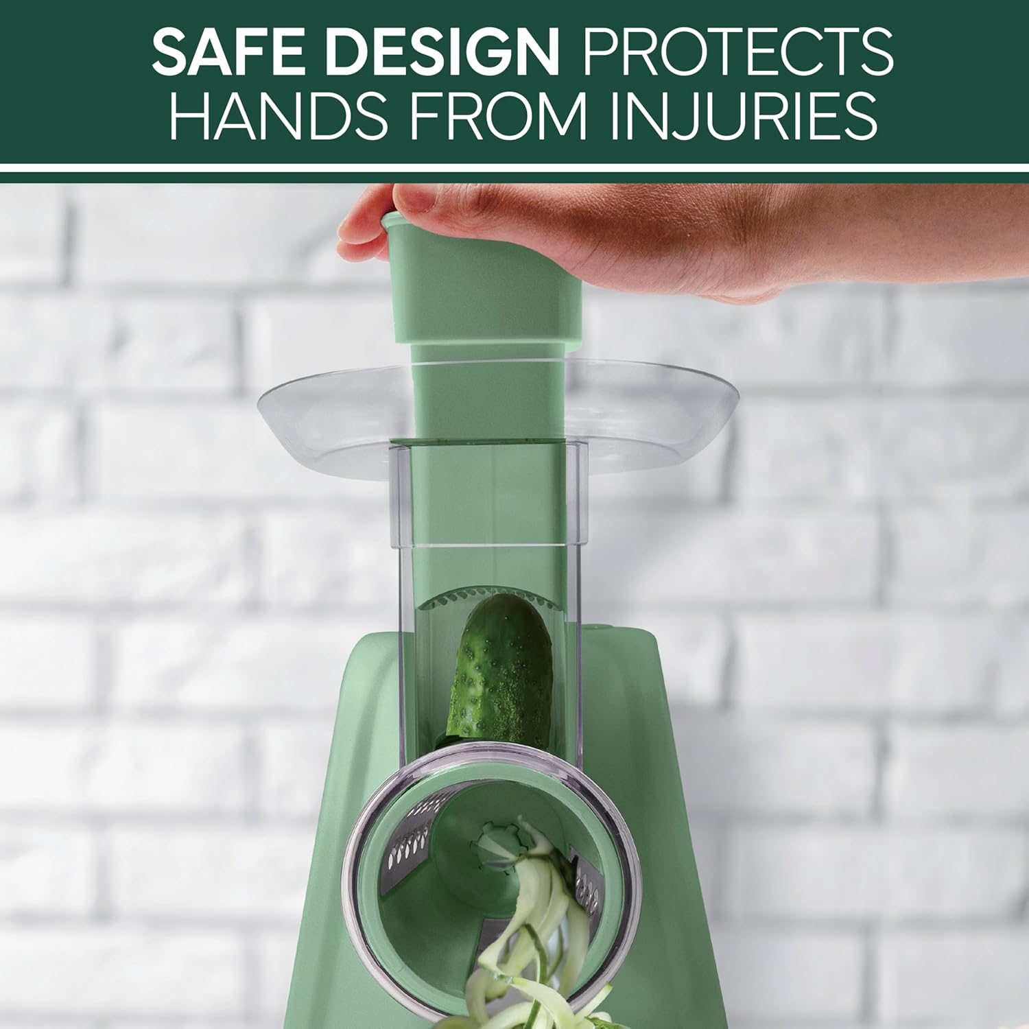 COOK WITH COLOR 5-in-1 Electric Slicer, 150W Food Prep Machine – Cheese Shredder, Fine & Coarse Graters, Potato Grater, Vegetable Slicer, Fruit, Salad Shooter, Compact Design for Bowl Prep, Green