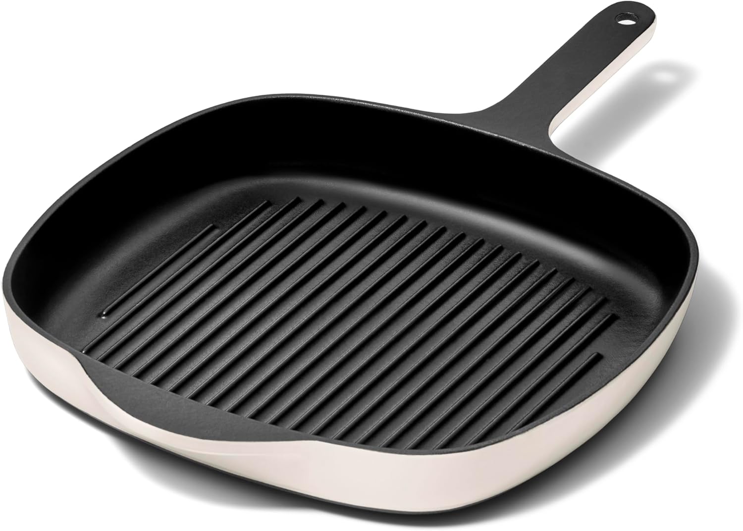 Caraway Enameled Cast Iron Grill Pan - 10.5” Grill Pan for Stovetop Cooking - 3 Layer Enamel Coating - No Seasoning Required - Compatible With All Stovetops - Free From Forever Chemicals - Cream