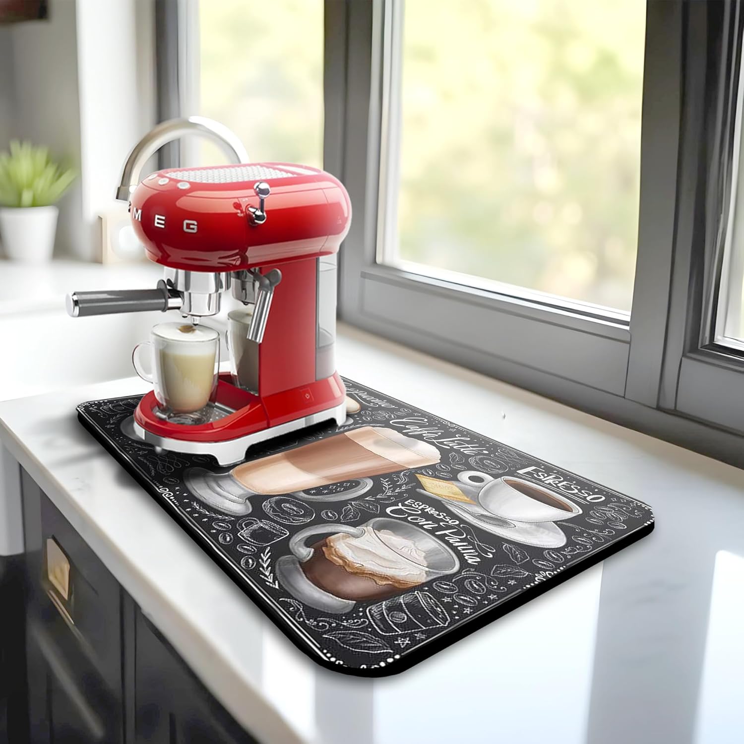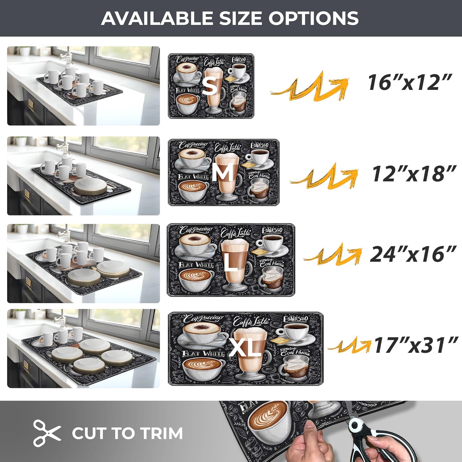 Dish Drying Mat Super Absorbent – 12" x 18" Coffee Mat for Countertops – Non-Slip Drying Mat for Kitchen Counter – Easy to Clean Water Absorbent Mat – Quick Dry Dish Drying Mats (Americano)