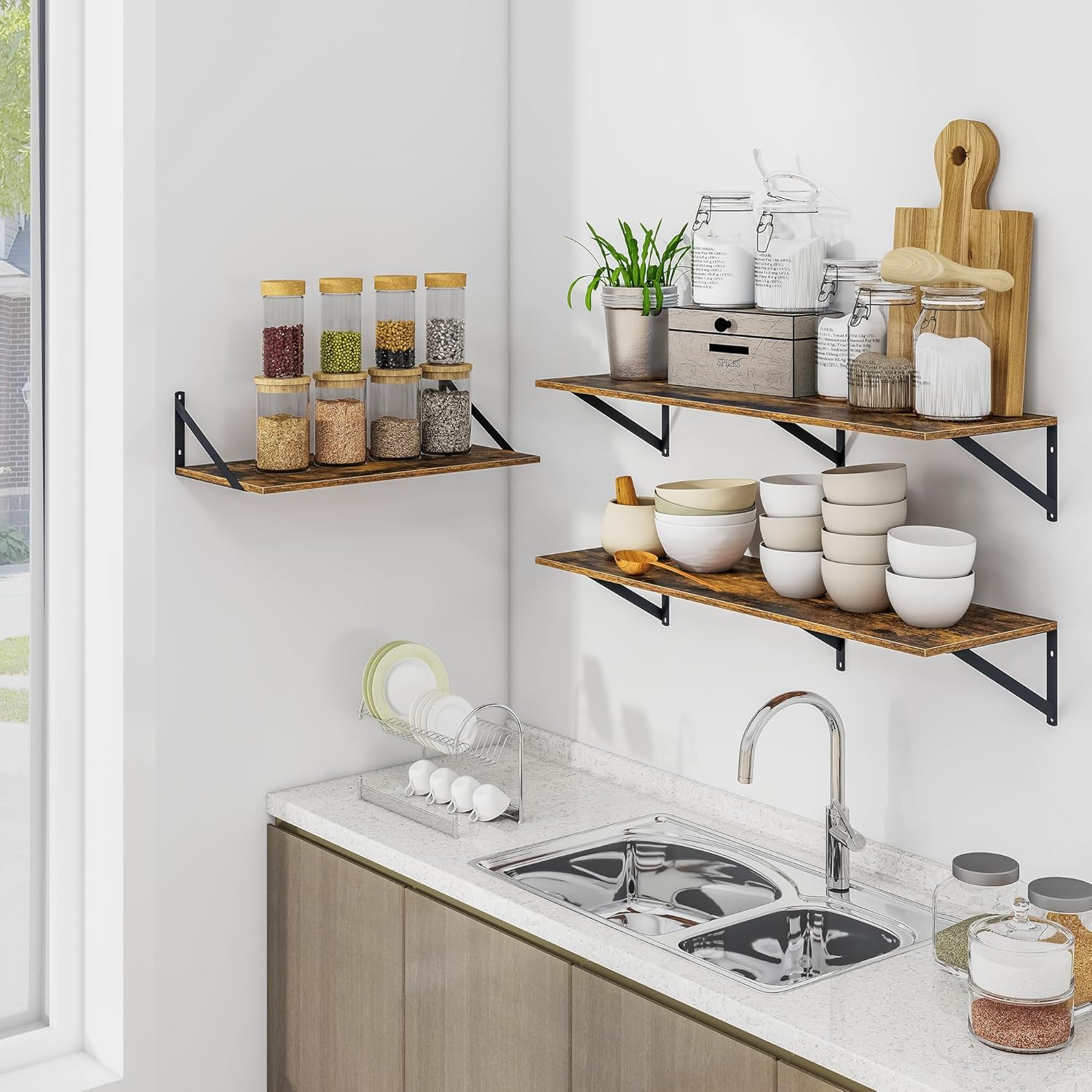 - [Large Capacity Floating Shelves] - Our wall shelves are 24" long x 12" deep, providing ample storage or display space for your kitchen, living room, bedroom, bathroom, laundry room, and more. With such a large space, you can place many items like books, collectibles, plants, crafts, photos, laundry detergent, etc. Our shelf can even be used as a bookshelf or a nightstand. Let our shelves decorate every corner of your home!