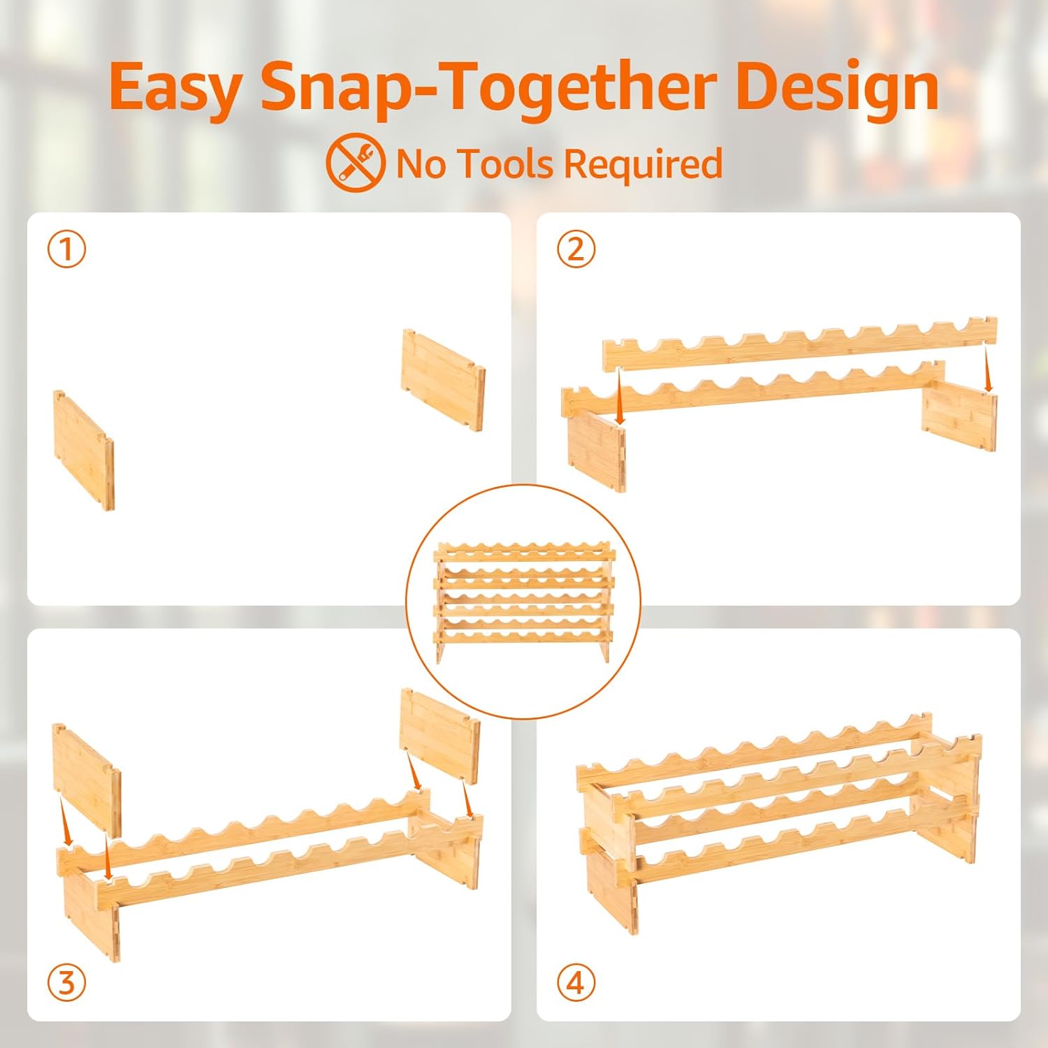 - NATURAL BAMBOO CONSTRUCTION: 100% natural bamboo wine rack offers lightweight durability and a clean, minimal aesthetic