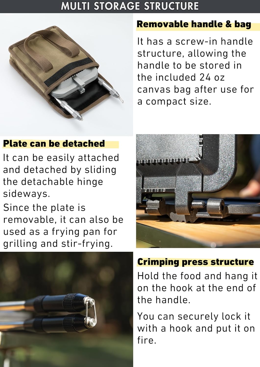 - 【Detachable Handles for Convenience】Featuring removable handles, this toaster provides added convenience for storage, transport, and cleaning, allowing you to customize your outdoor cooking experience effortlessly.