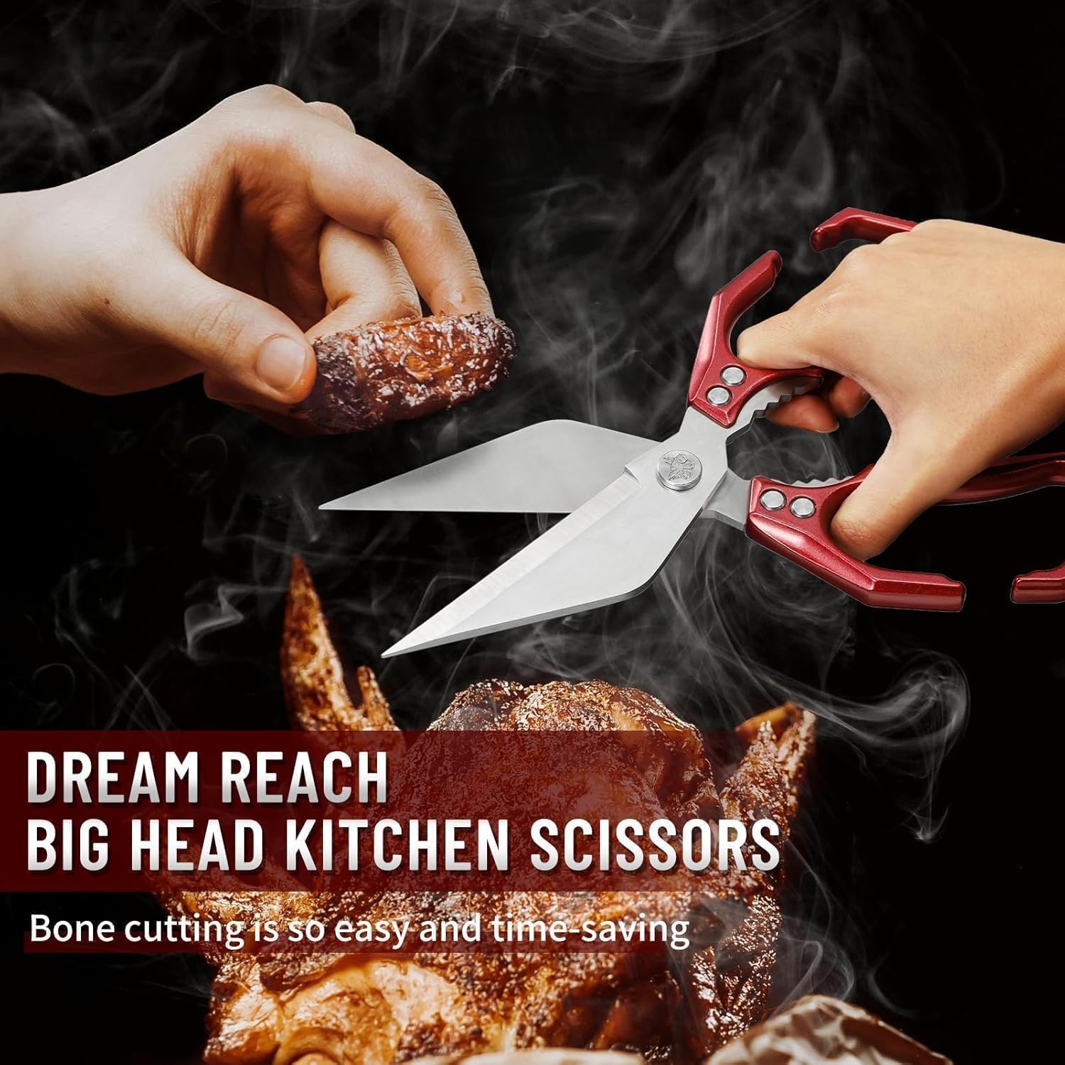 - Precision Cutting Made Easy: Dream Reach Big Head Series chicken scissors are crafted from premium 3Cr13Mov stainless steel, designed to effortlessly handle raw or cooked meat, poultry, seafood, and more. With their razor-sharp, heat-treated blades, cutting through ingredients has never been smoother or more efficient.