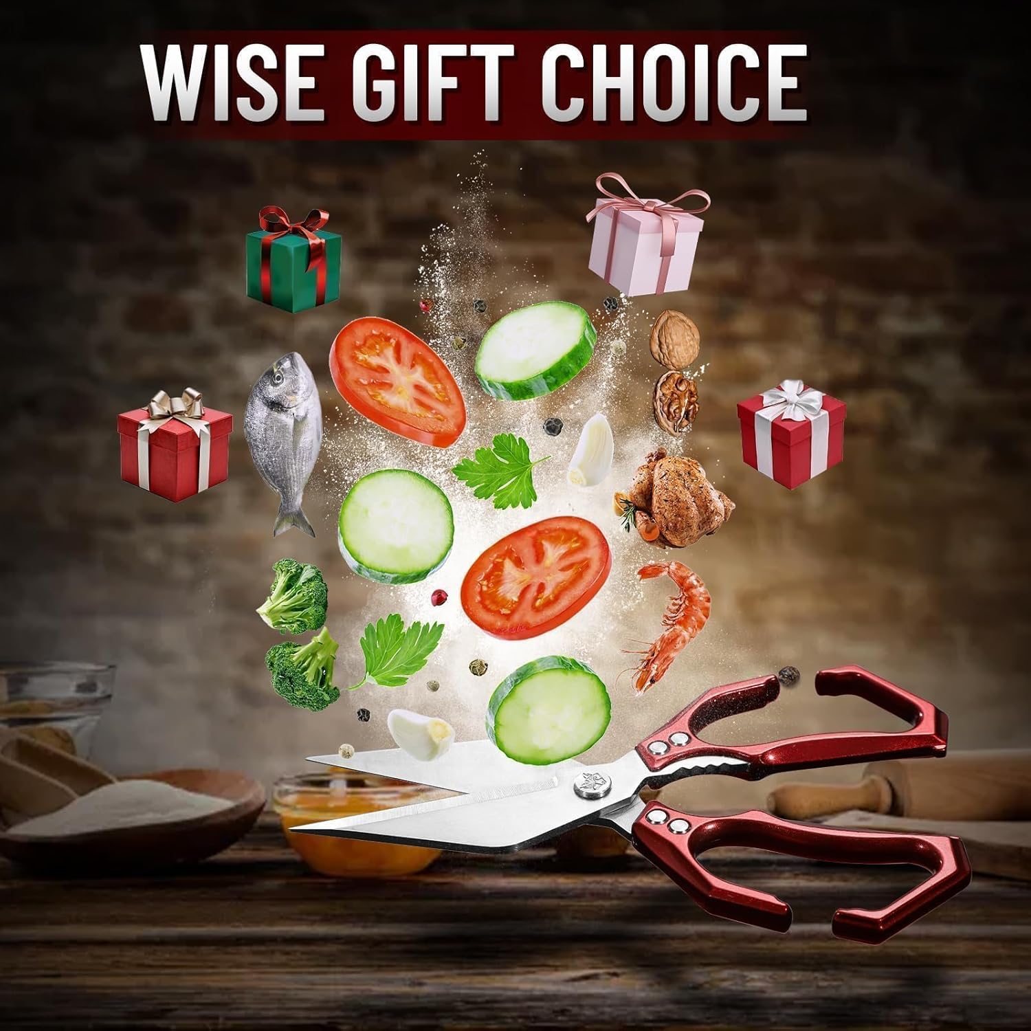 - A Thoughtful Gift: Presented in an elegant gift box adorned with intricate patterns, these heavy duty kitchen shears are a considerate gift for the most amazing man in your life. With their stylish packaging and practical utility, they make an unforgettable culinary present.