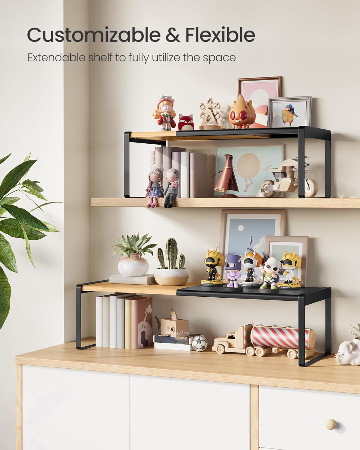 - ăVERSATILEăPlace these shelf organizers in kitchen cupboards or on countertops to store spices, or use them as tabletop organizers or shoe racks. You can use 2 shelves separately or stack them up as you like!